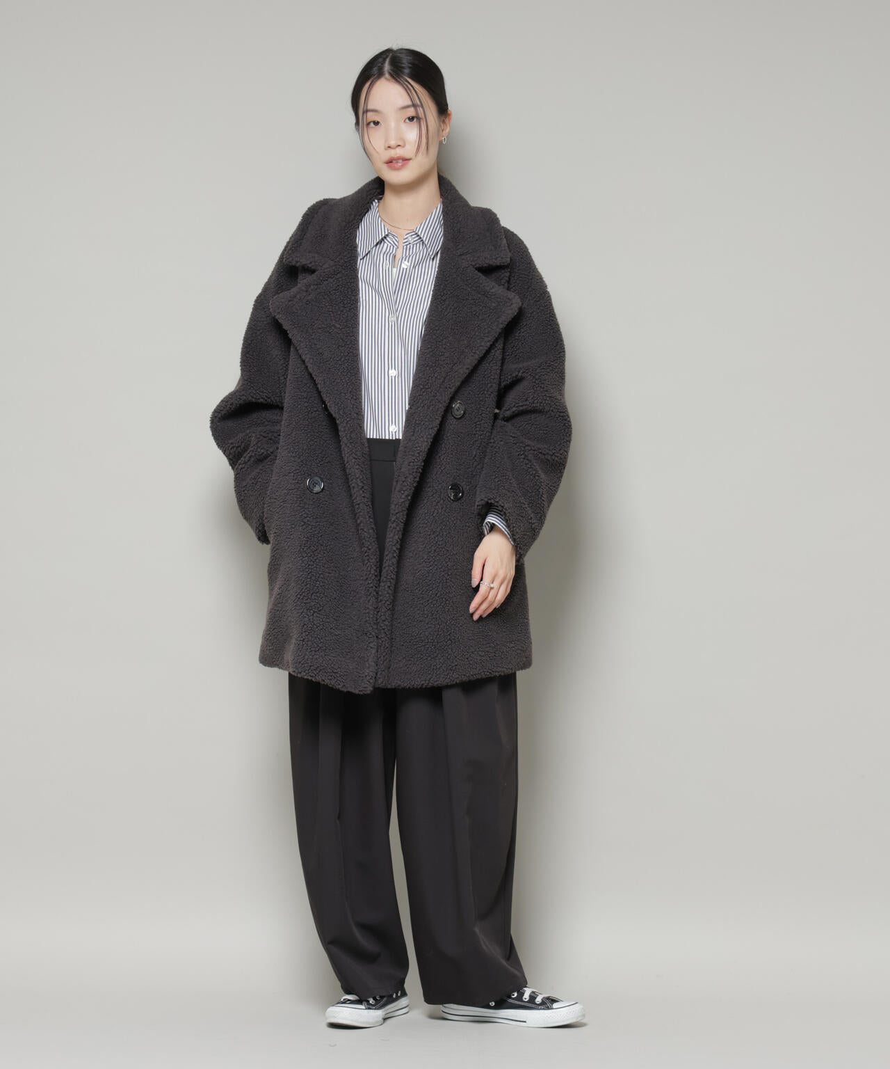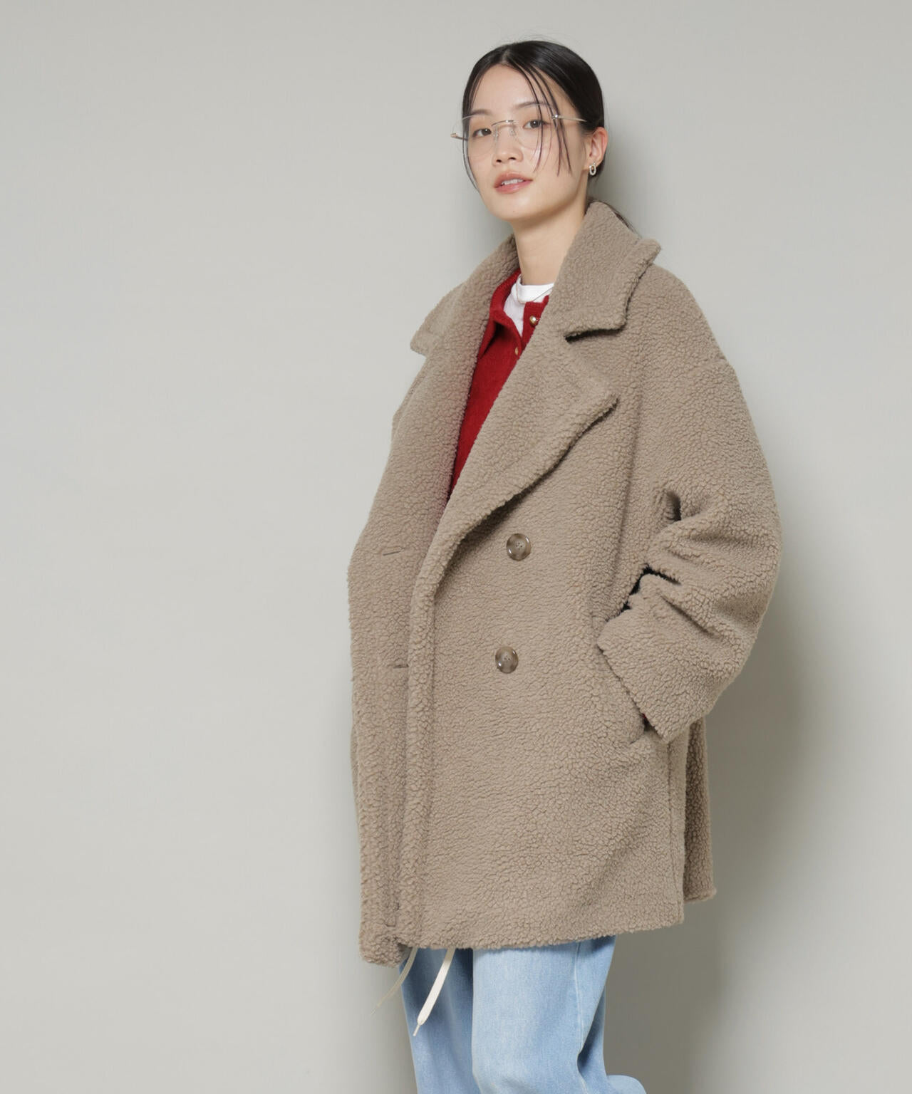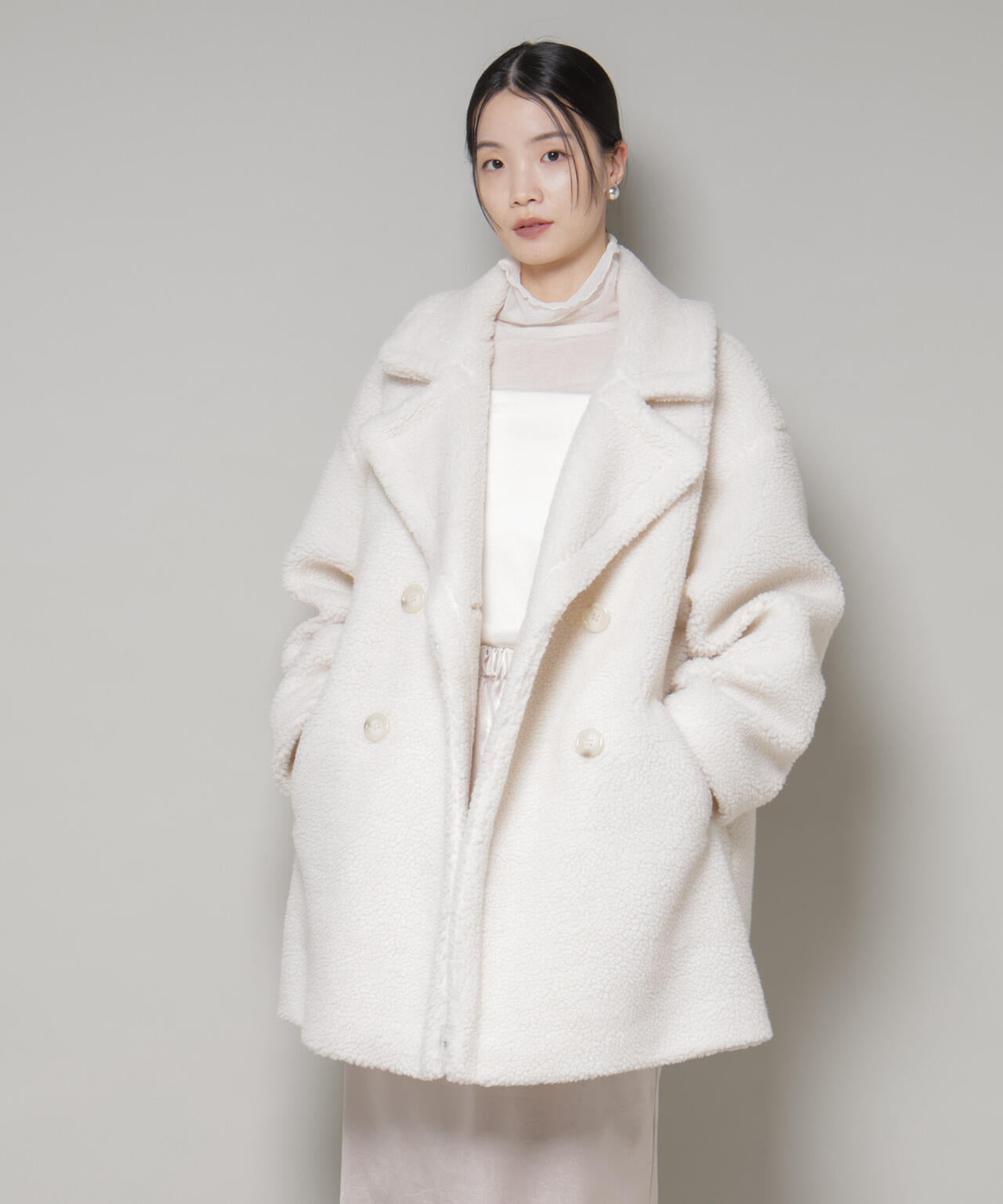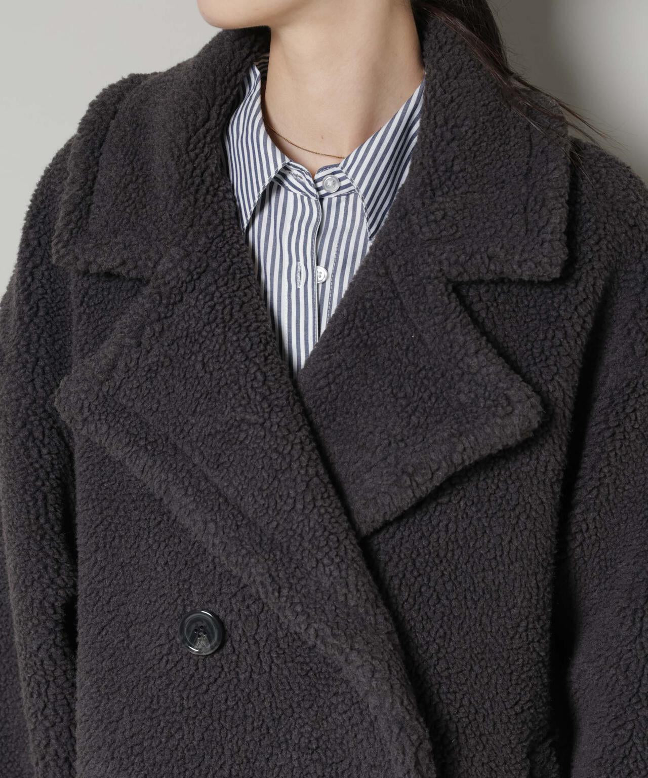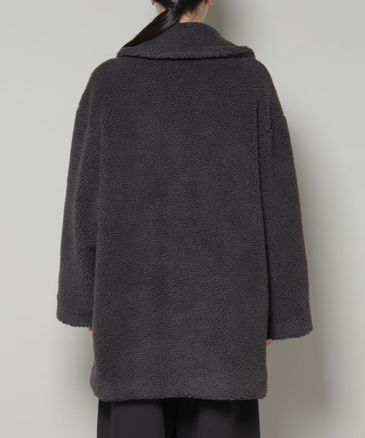 軽くて暖かみのある、モコモコとした素材感が大人可愛いミドルコート。リラックス感のあるワイドなサイジングで、軽くバサっと羽織りやすいのも魅力です。