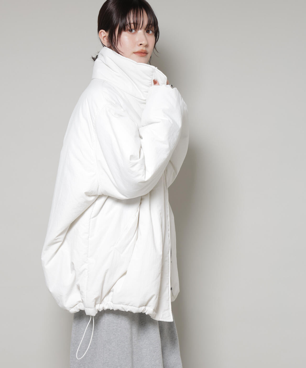 ボリュームある中綿のデザインが特徴のスタンドカラーブルゾン。裾のドロストを絞ることで、丸みのあるシルエットや裾の広がったシルエットなど、スタイリングに合わせて着こなしを楽しめそう!