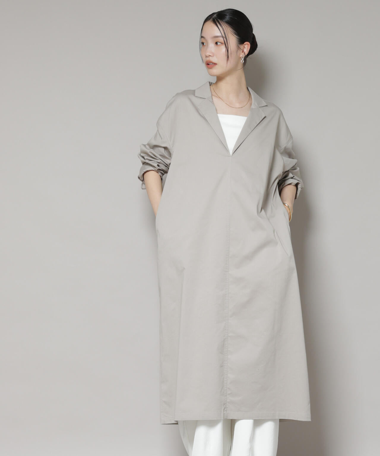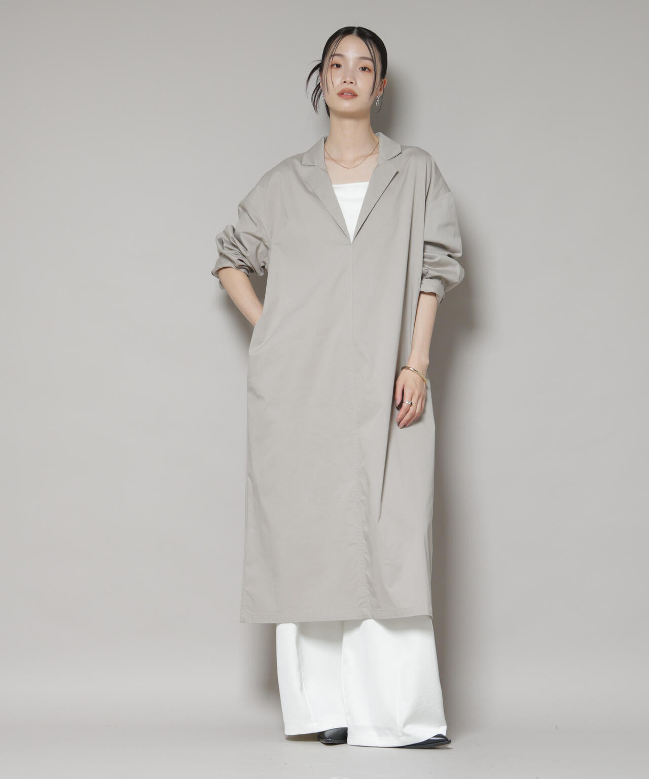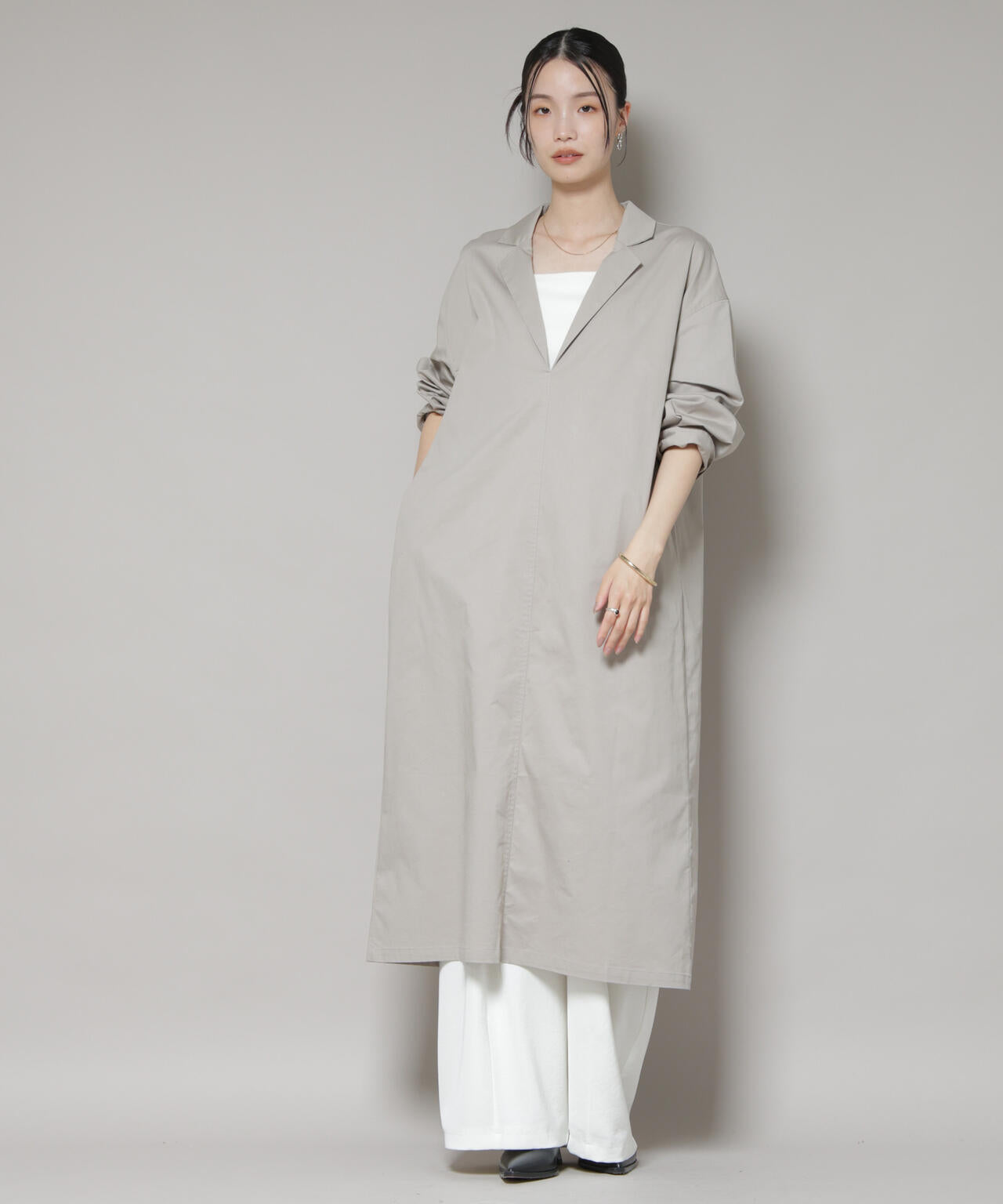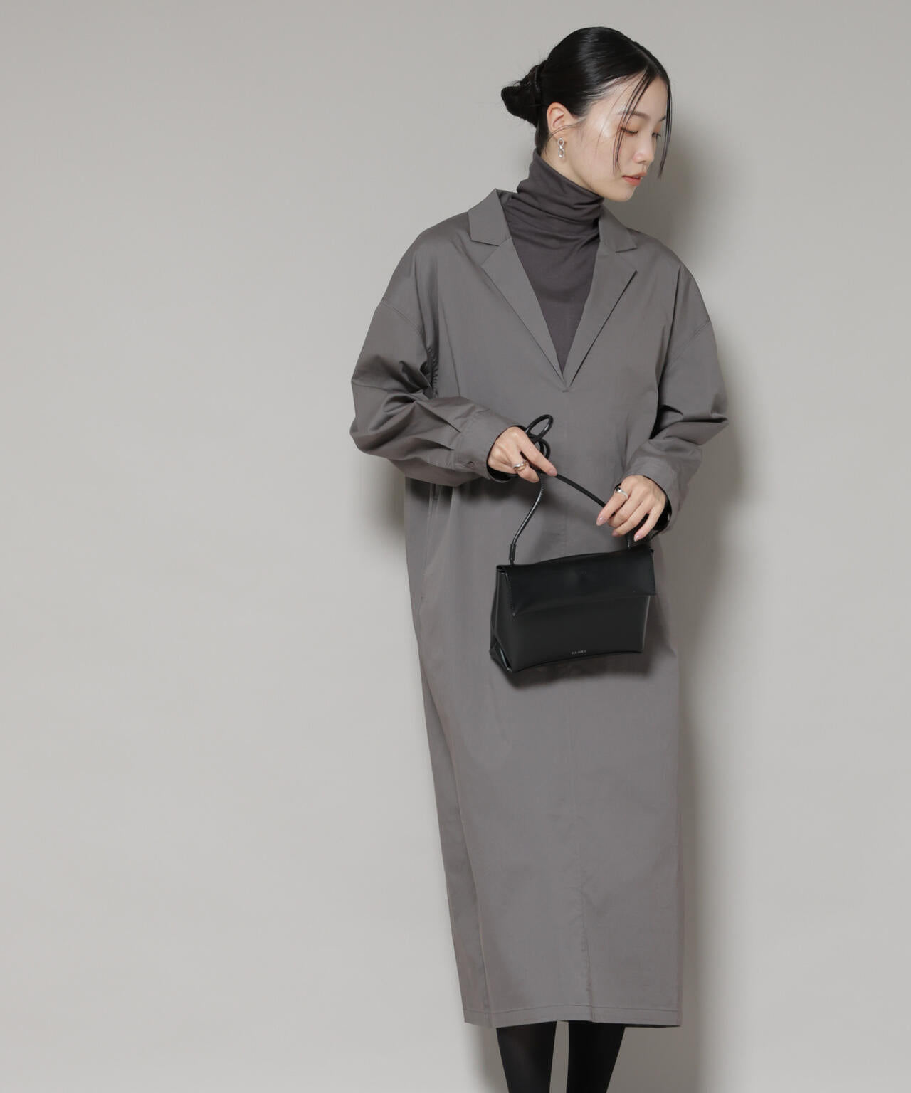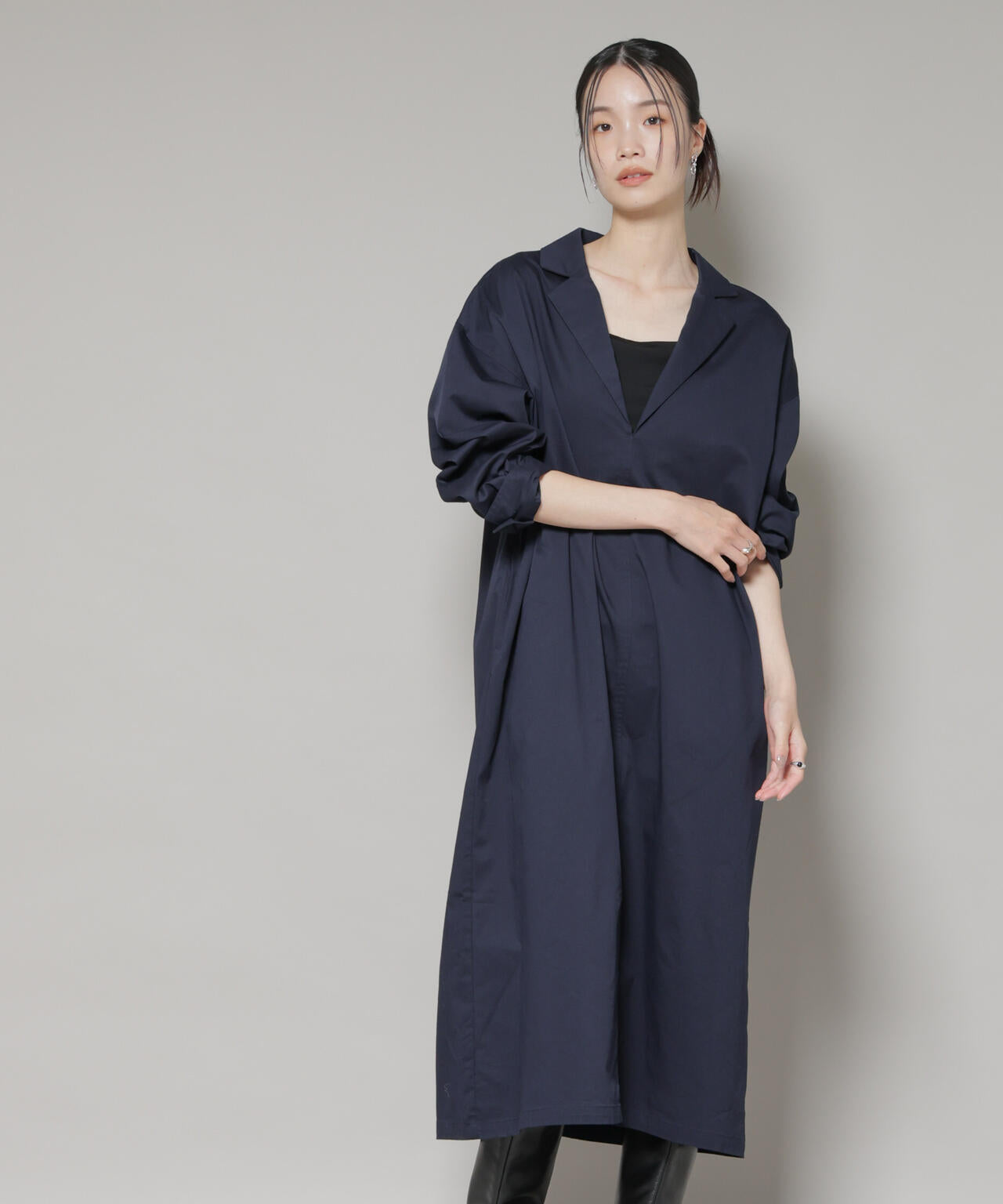 ハンサム感のあるテーラードカラーがポイントのロングワンピース。ややゆったりとした身幅と深めのVネックで大人の抜け感取り入れつつ、デイリーに使いやすいシルエットに仕立てた一着です。