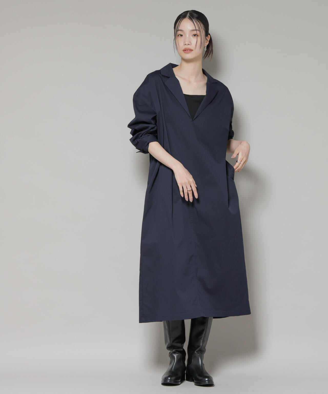 ハンサム感のあるテーラードカラーがポイントのロングワンピース