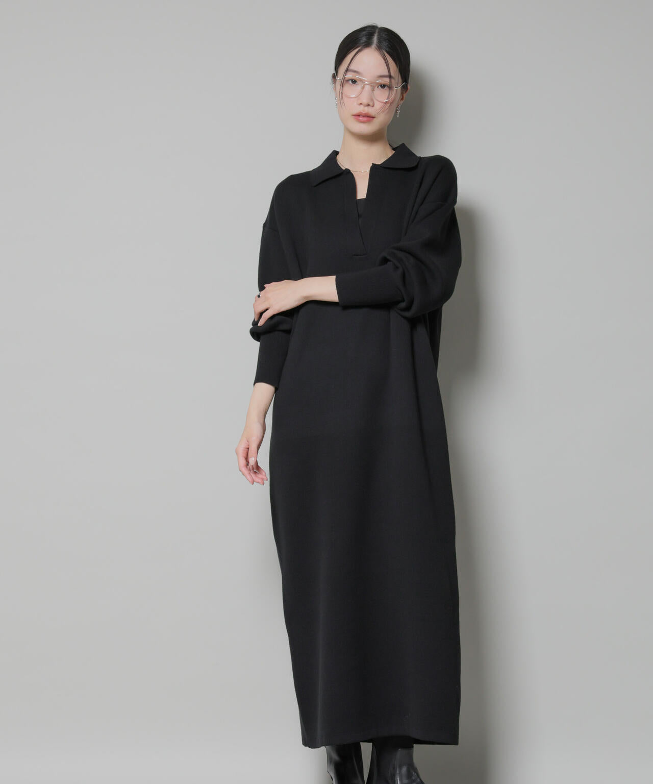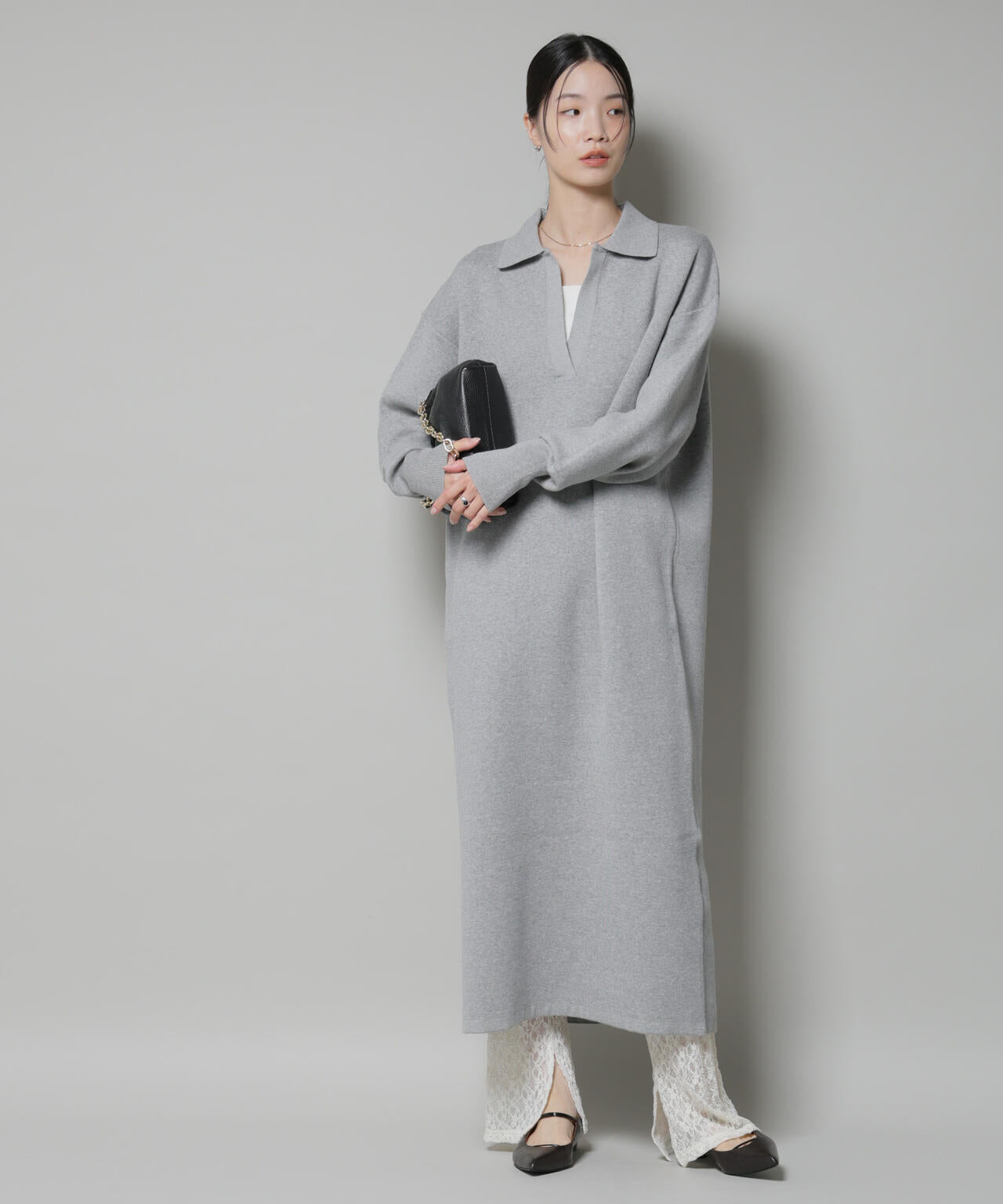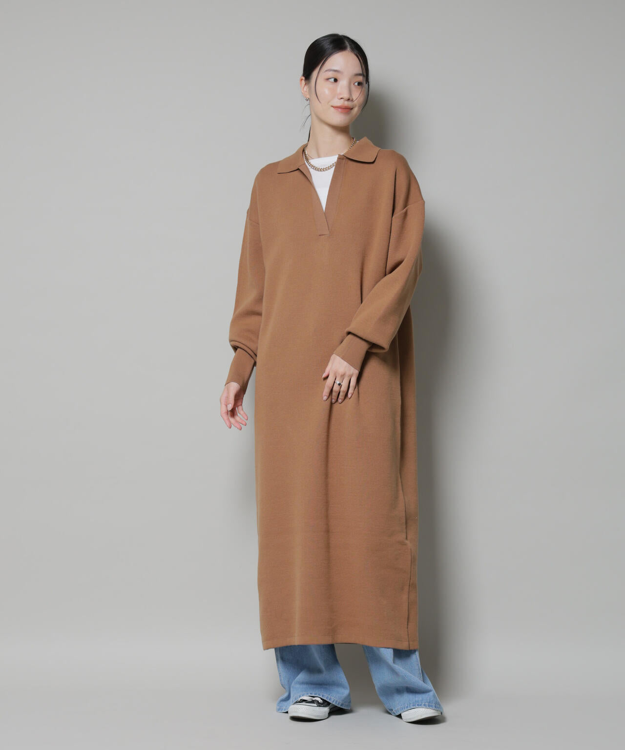 大人カジュアルにぴったりのスウェット感覚でさらっと着れるニットワンピース。トレンド感のある衿付きデザインで、シャツやカットソーをインナーにしたり合わせる小物で雰囲気を変えたりと、レイヤードしたこなれ感あるスタイルがおすすめです。