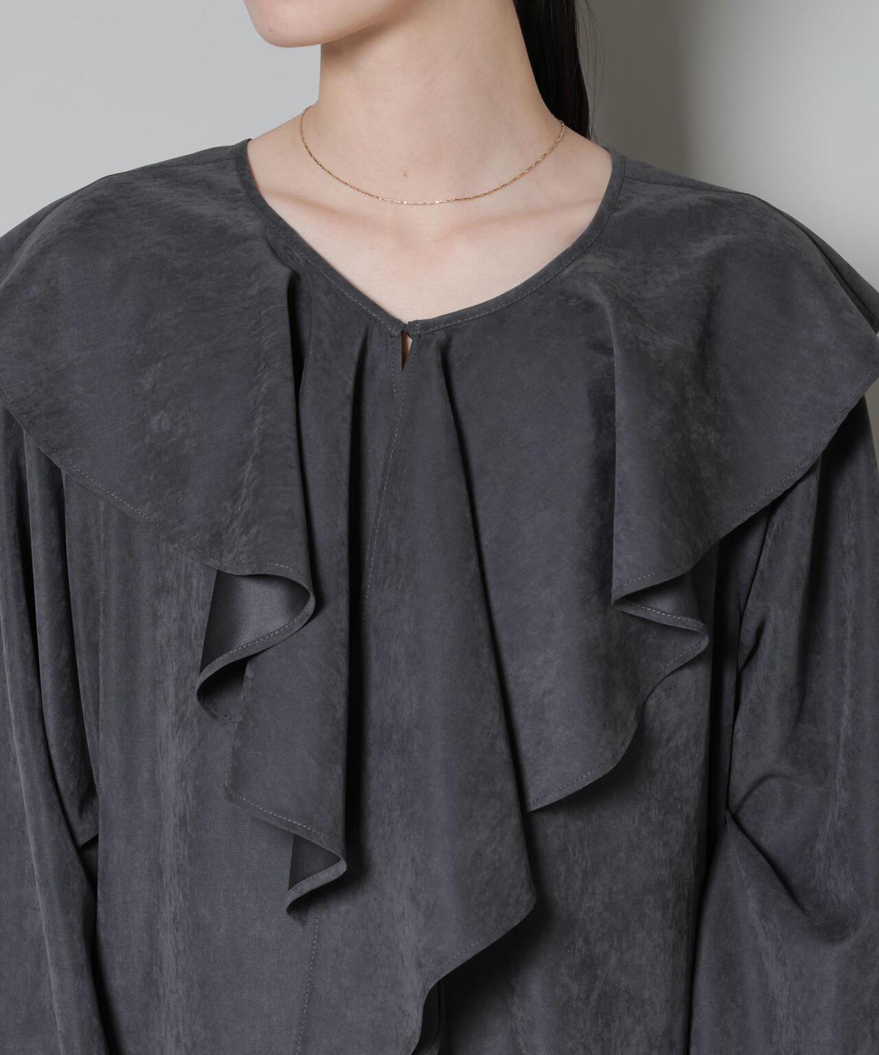 付属のラッフルカラーをつけると、トレンド感のあるフレアカラーワンピースとしても楽しめる一枚