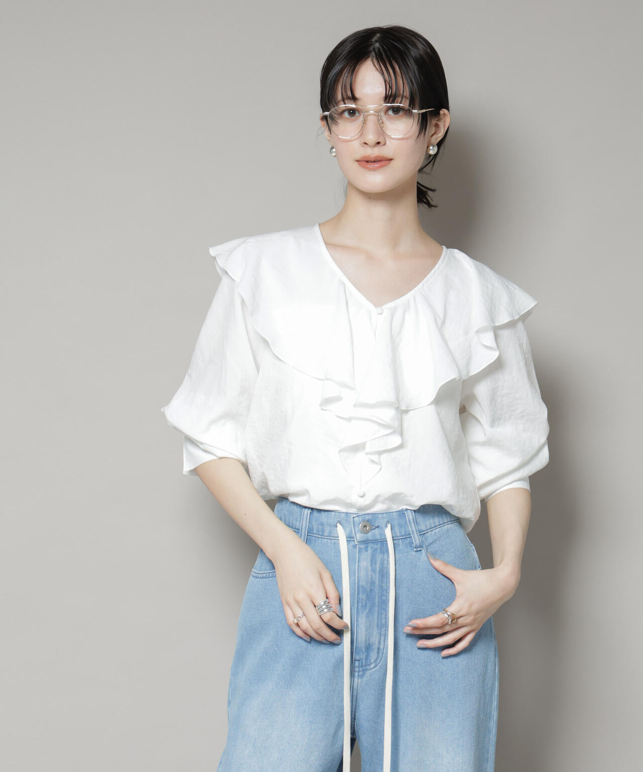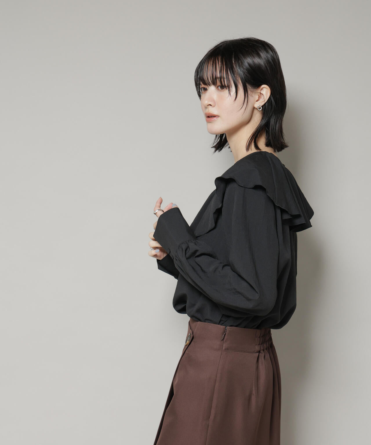 ・ラッフルカラーが華やかさを演出してくれるデザインブラウス