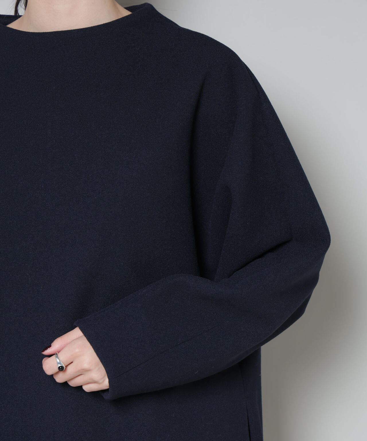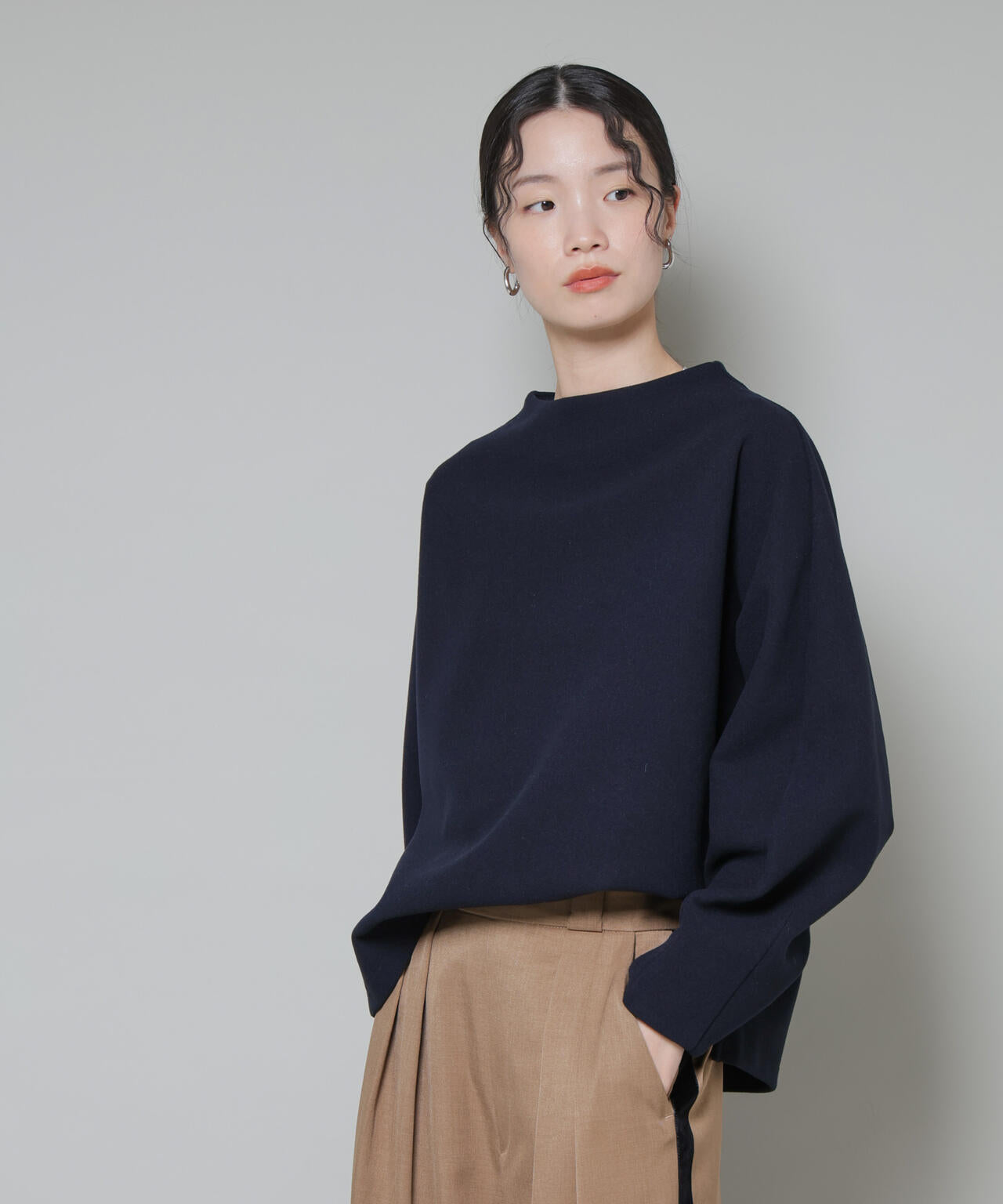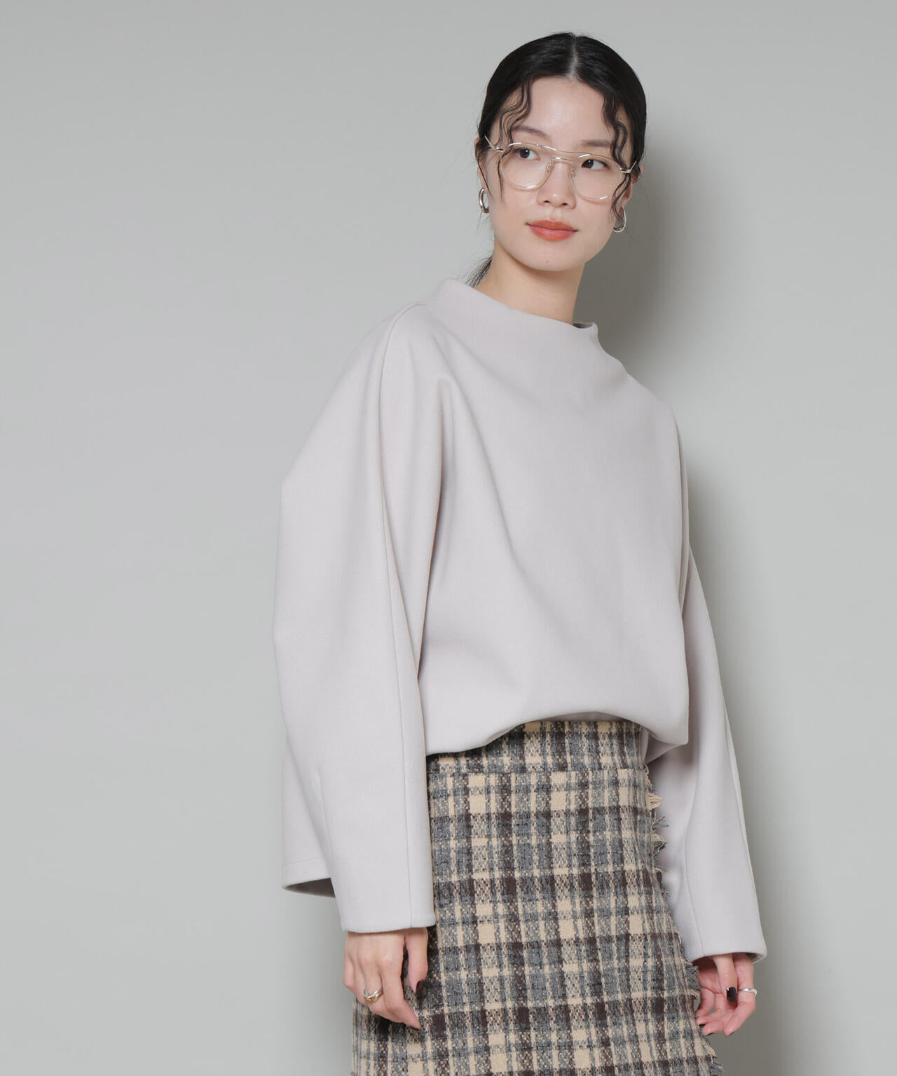 ・ドルマンデザインとモックネックが落ち着いた女性らしい印象を演出