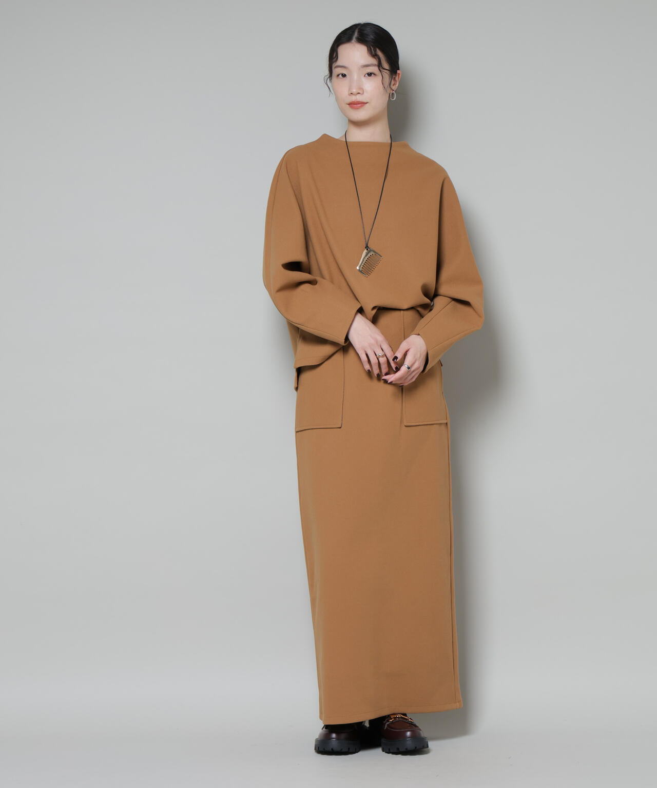 ソフトメルトンジャージータックスリーブモックネックトップス(セットアップ可)