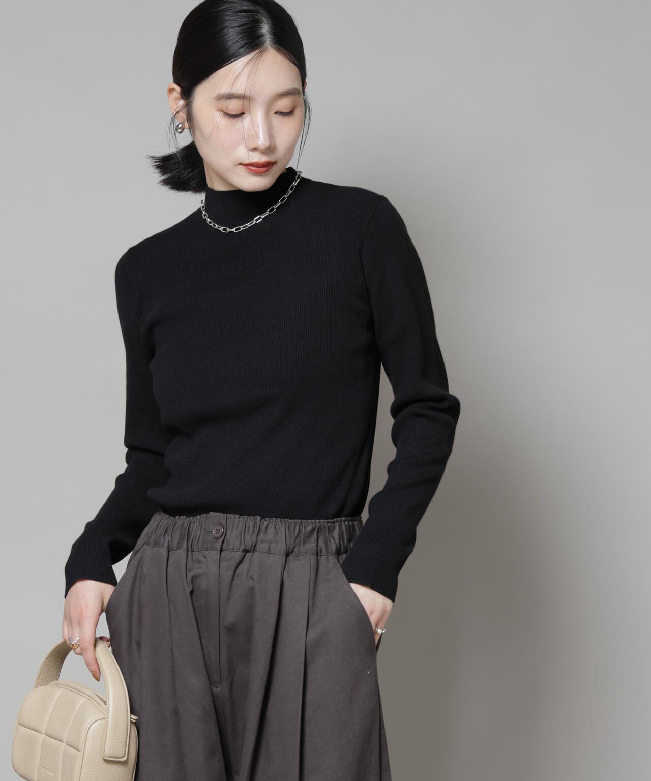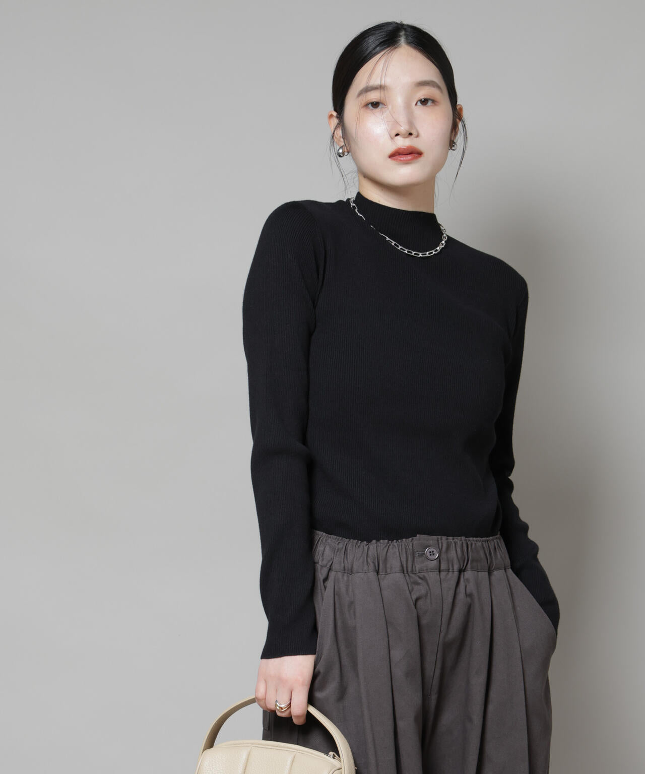 細めのリブが華奢見えさせてくれる大人っぽい印象のハイネックリブニット。着回しやすいベーシックなデザインで、ジャケットやシャツにインしたり、キャミワンピ等とレイヤードしたり、幅広いコーディネートを楽しめるアイテムです。