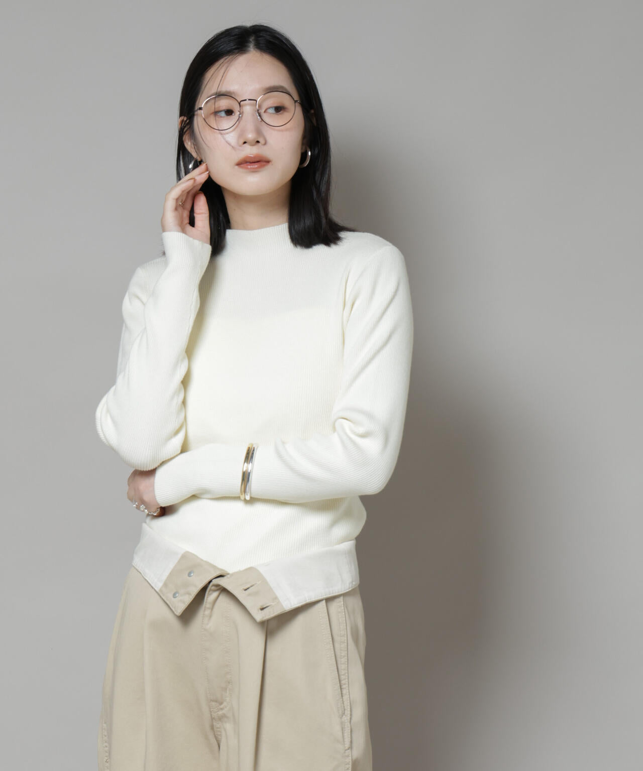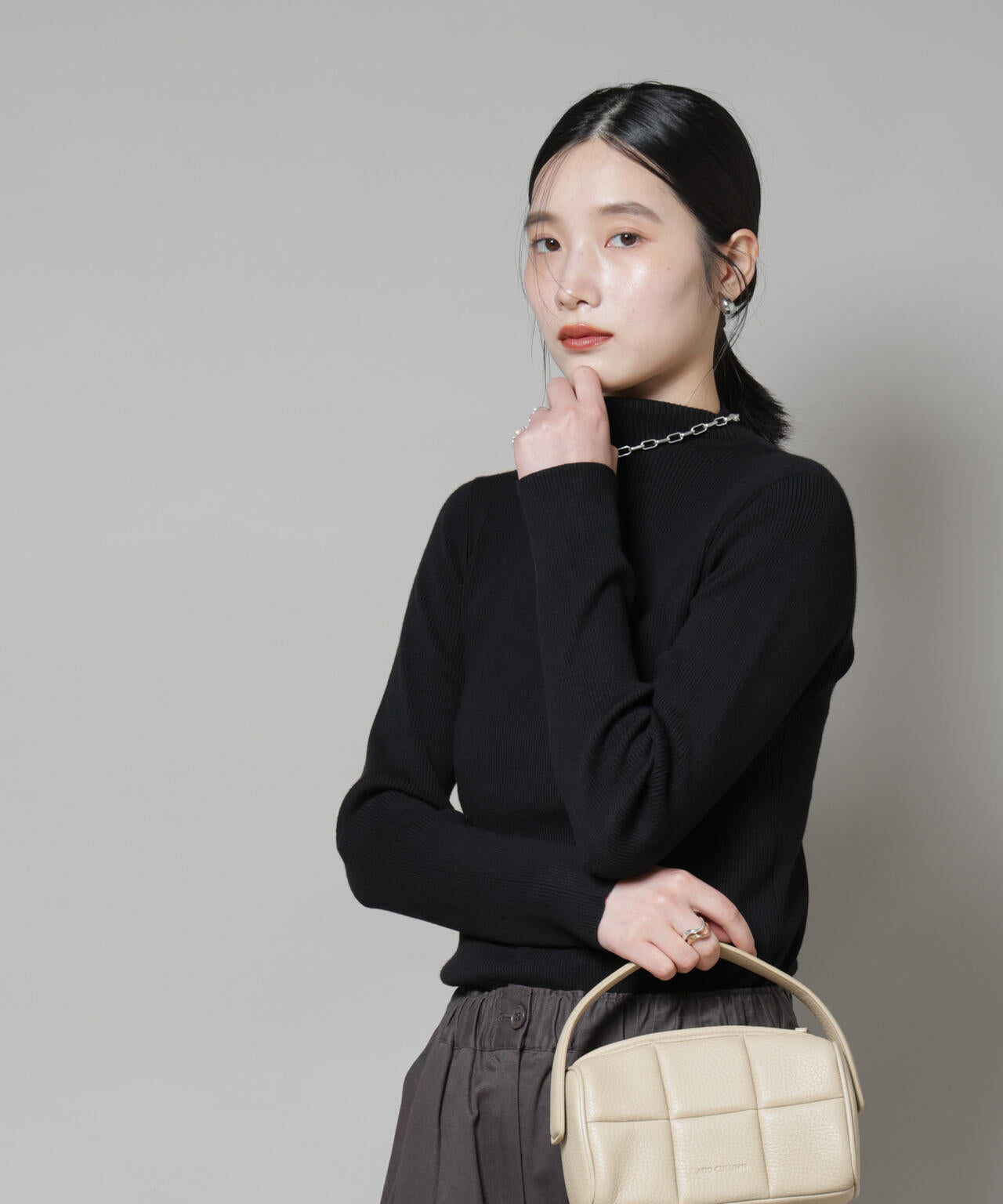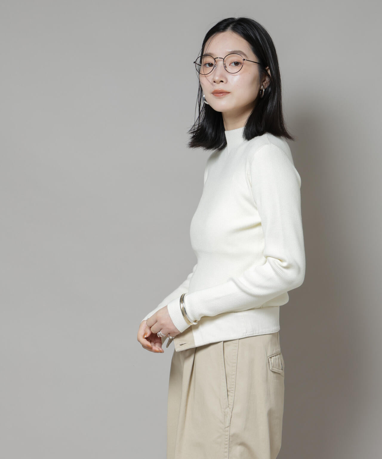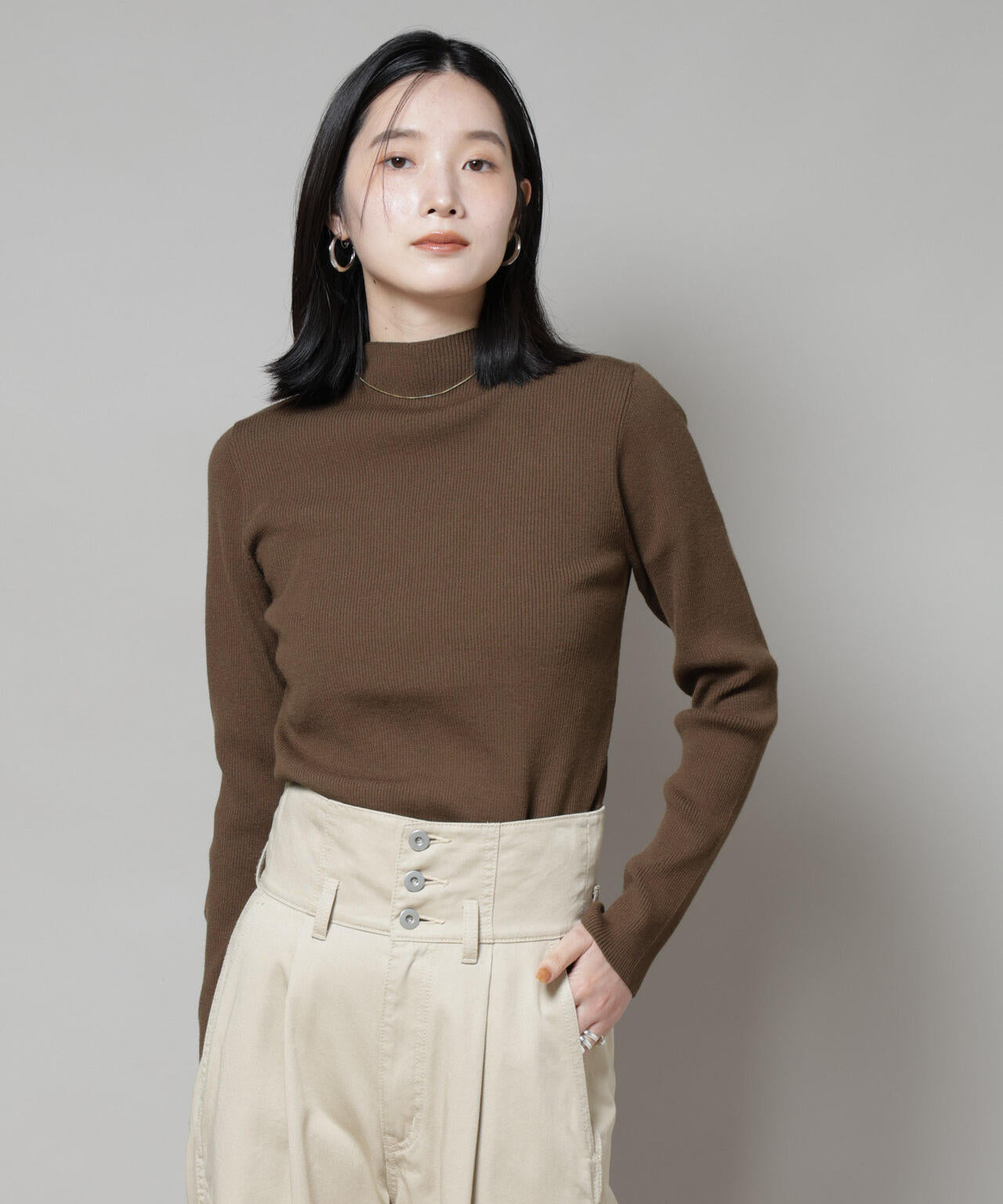 細めのリブが華奢見えさせてくれる大人っぽい印象のハイネックリブニット