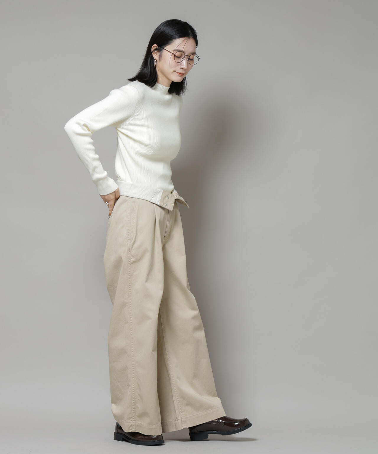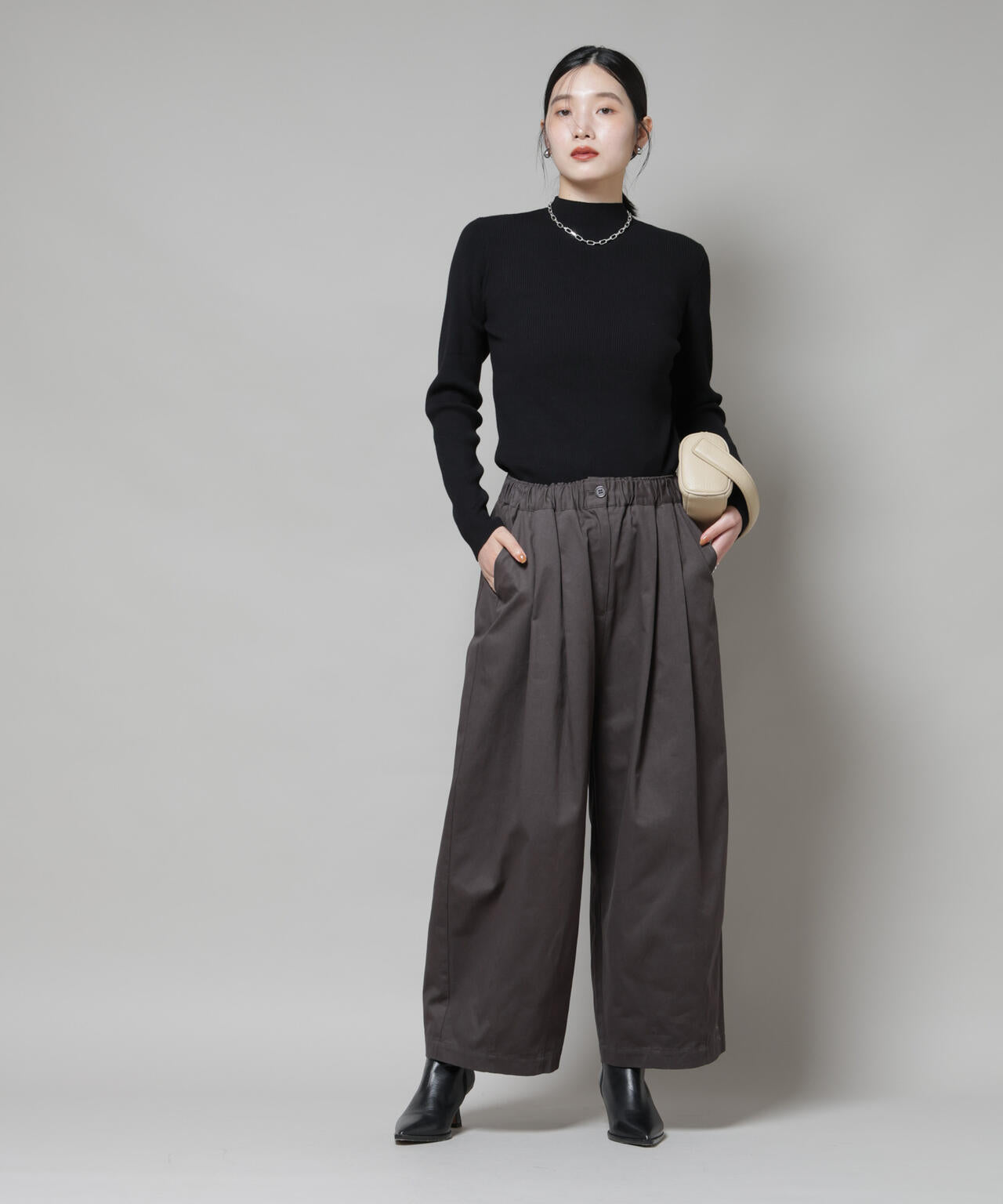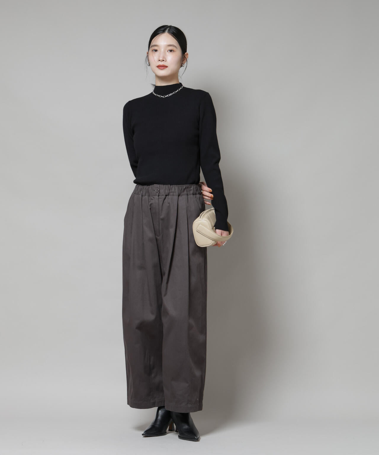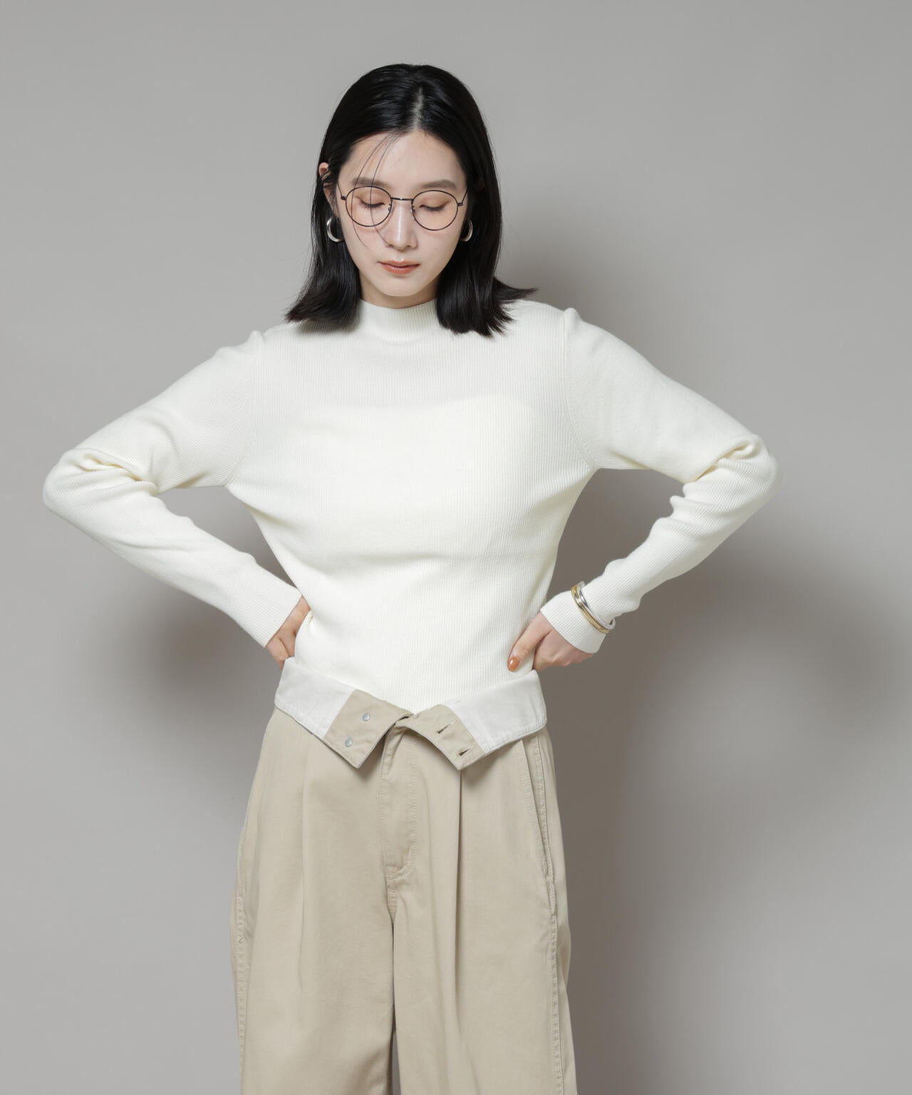 細めのリブが華奢見えさせてくれる大人っぽい印象のハイネックリブニット
