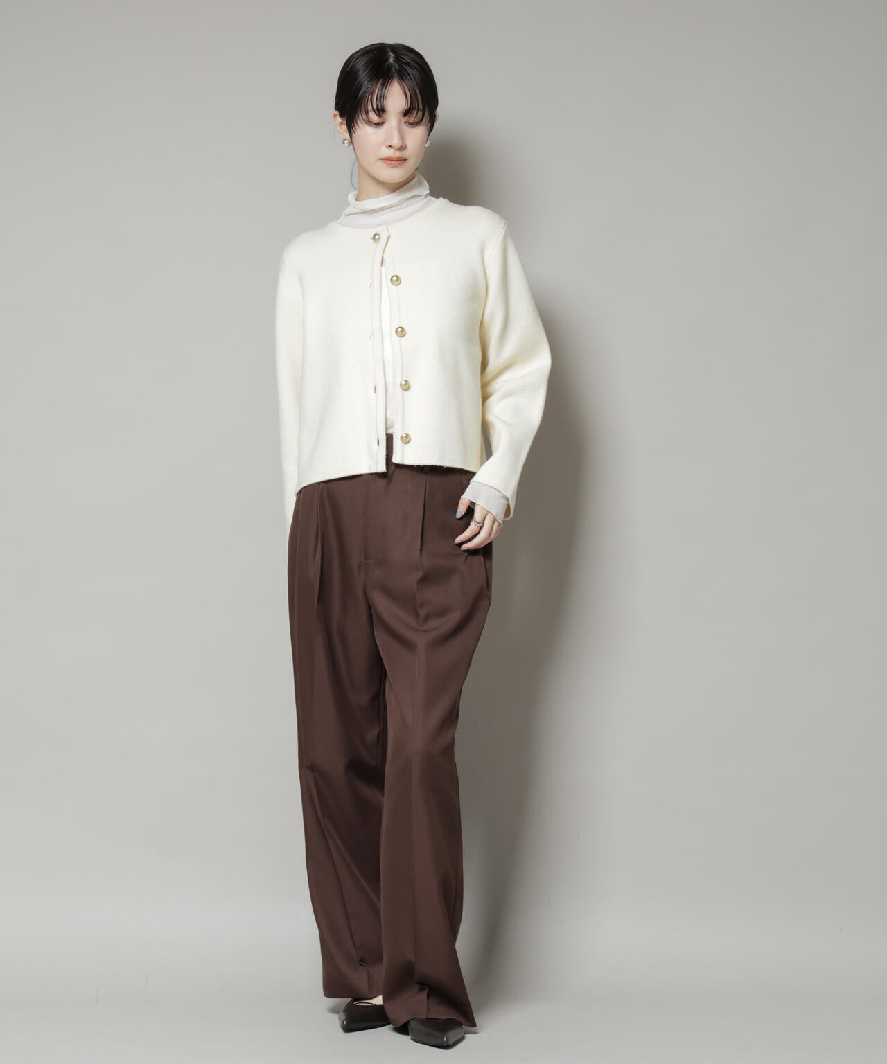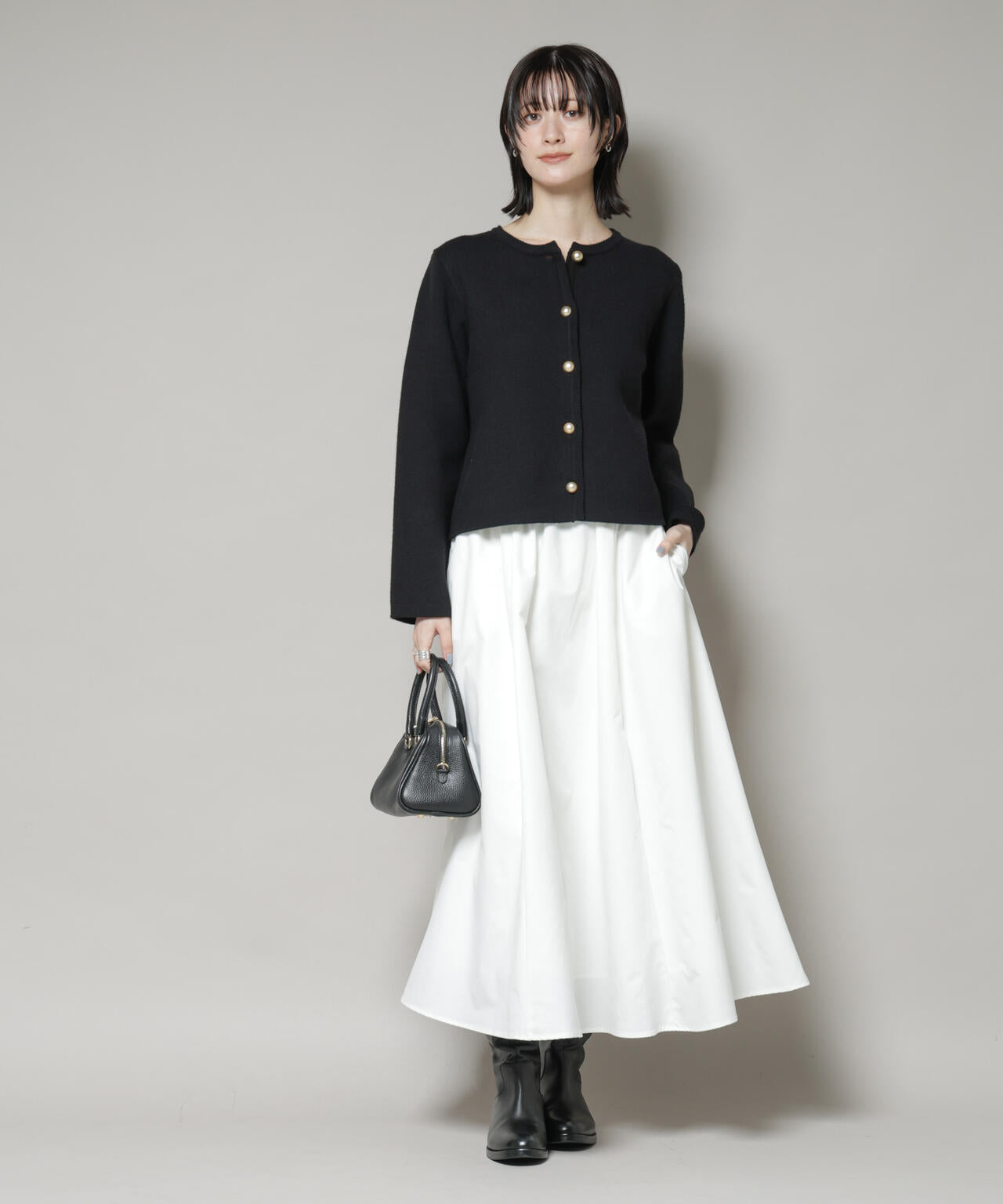 オンオフ着まわせるミラノリブニットカーディガン。ロゴTシャツやボーダーTなど、カジュアルインナーと合わせて着用しても可愛く、ジャケットのようなしっかり感があるのでオフィススタイルにもおすすめの一着です。
