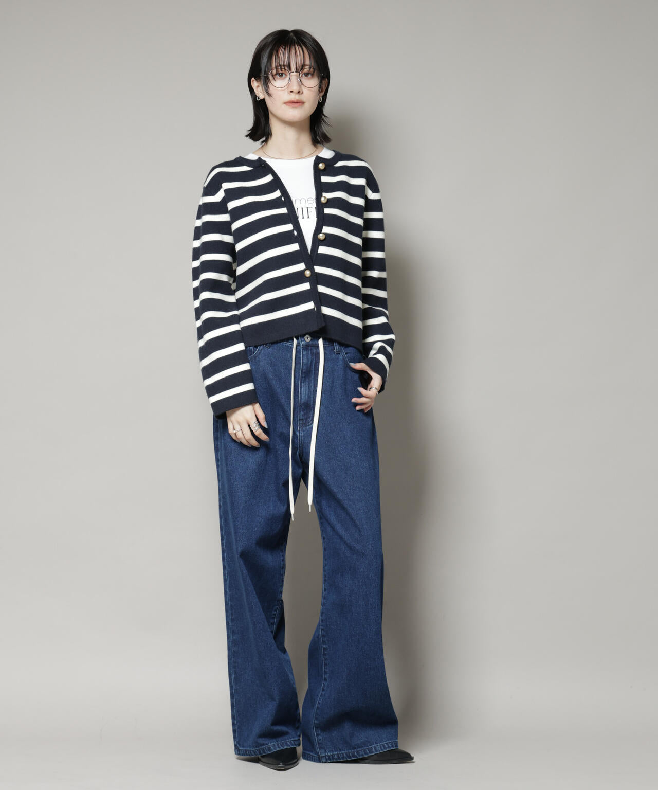 ・大人カジュアルなスタイルに仕上がるボーダー柄のネイビー