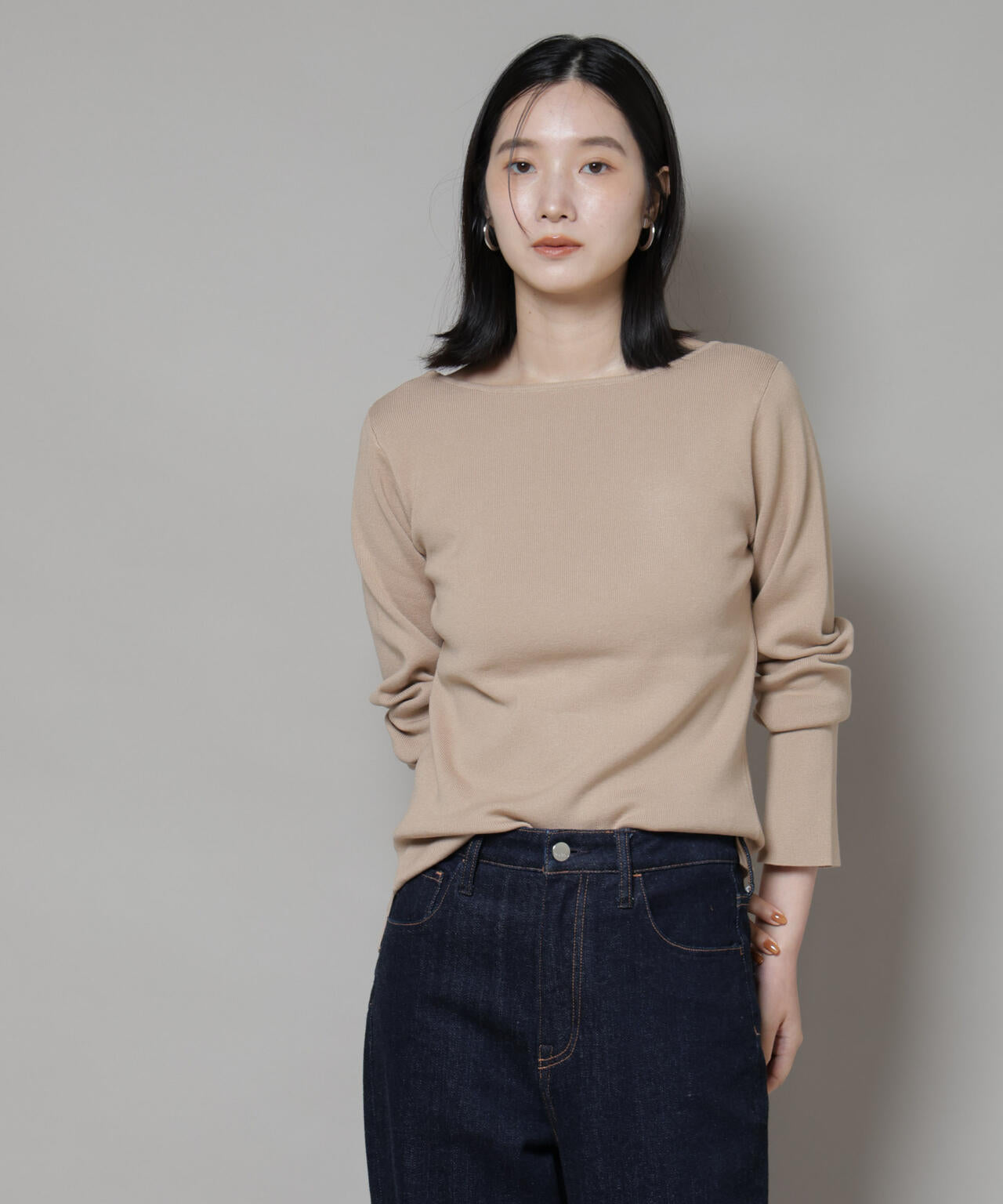 スクエアネックとボートネックのデザインを楽しめる、前後2wayのニットプルオーバー