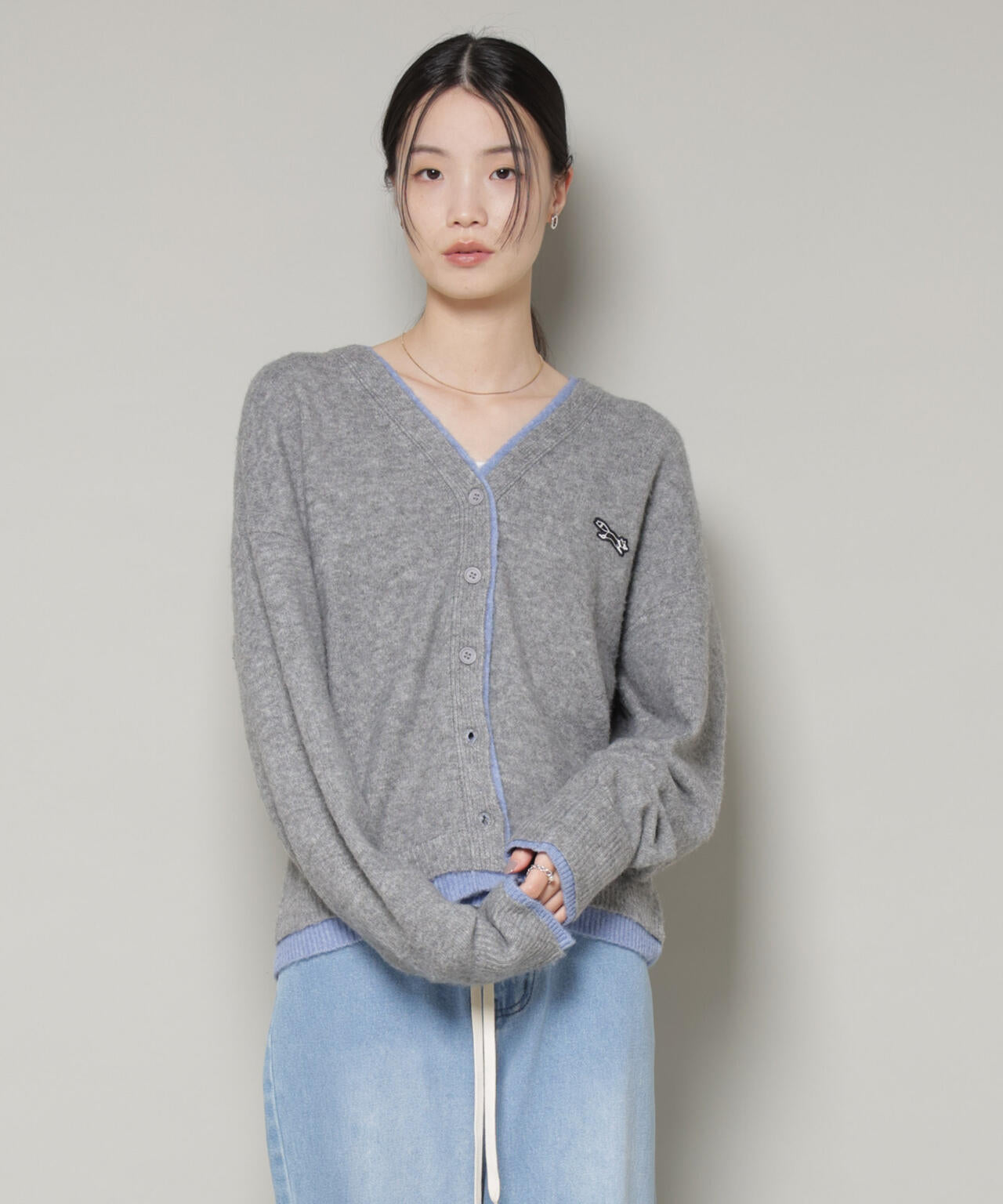 さり気ない配色がスタイリングのアクセントになってくれるニットカーディガン。トレンド感のあるレイヤード風デザインが、スタイリングを新鮮に見せてくれるアイテムです。