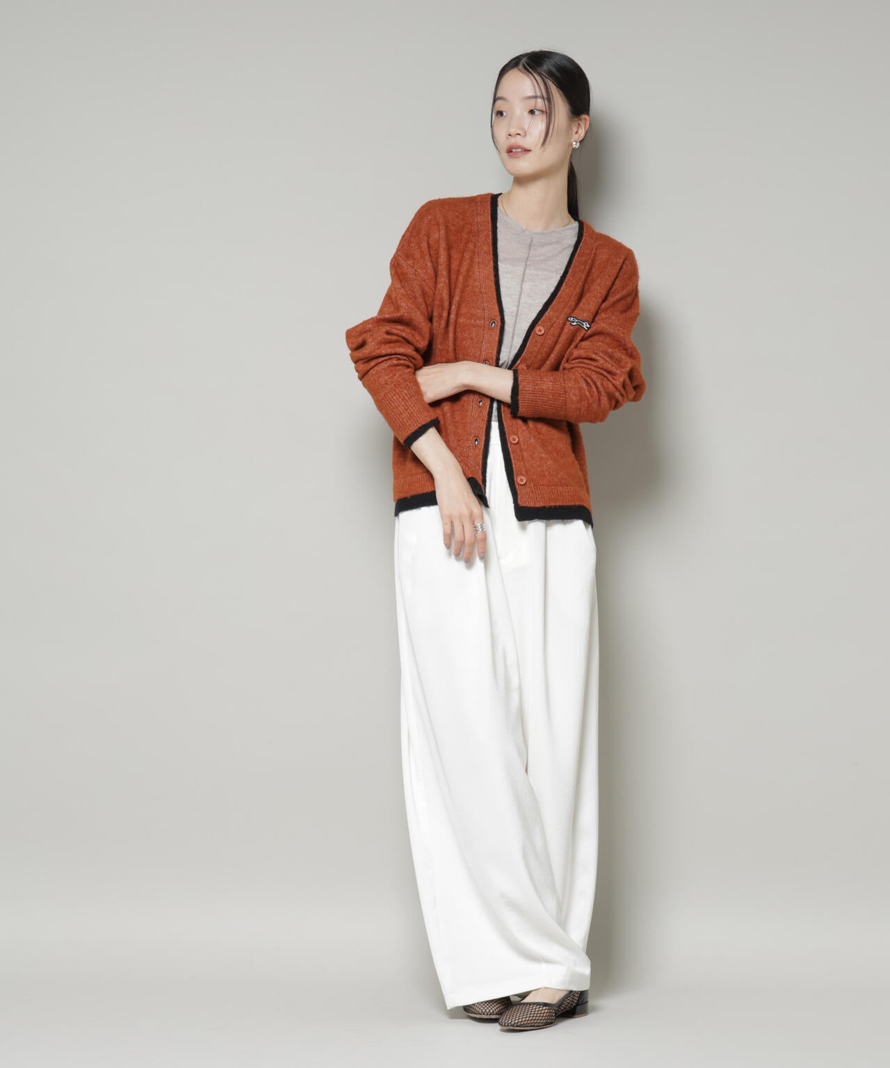 さり気ない配色がスタイリングのアクセントになってくれるニットカーディガン