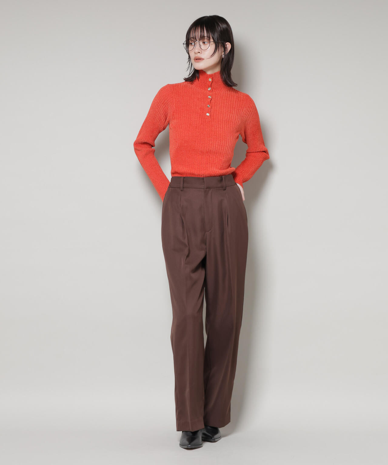 ・顔周りをすっきり見せてくれるハイネックニットトップス