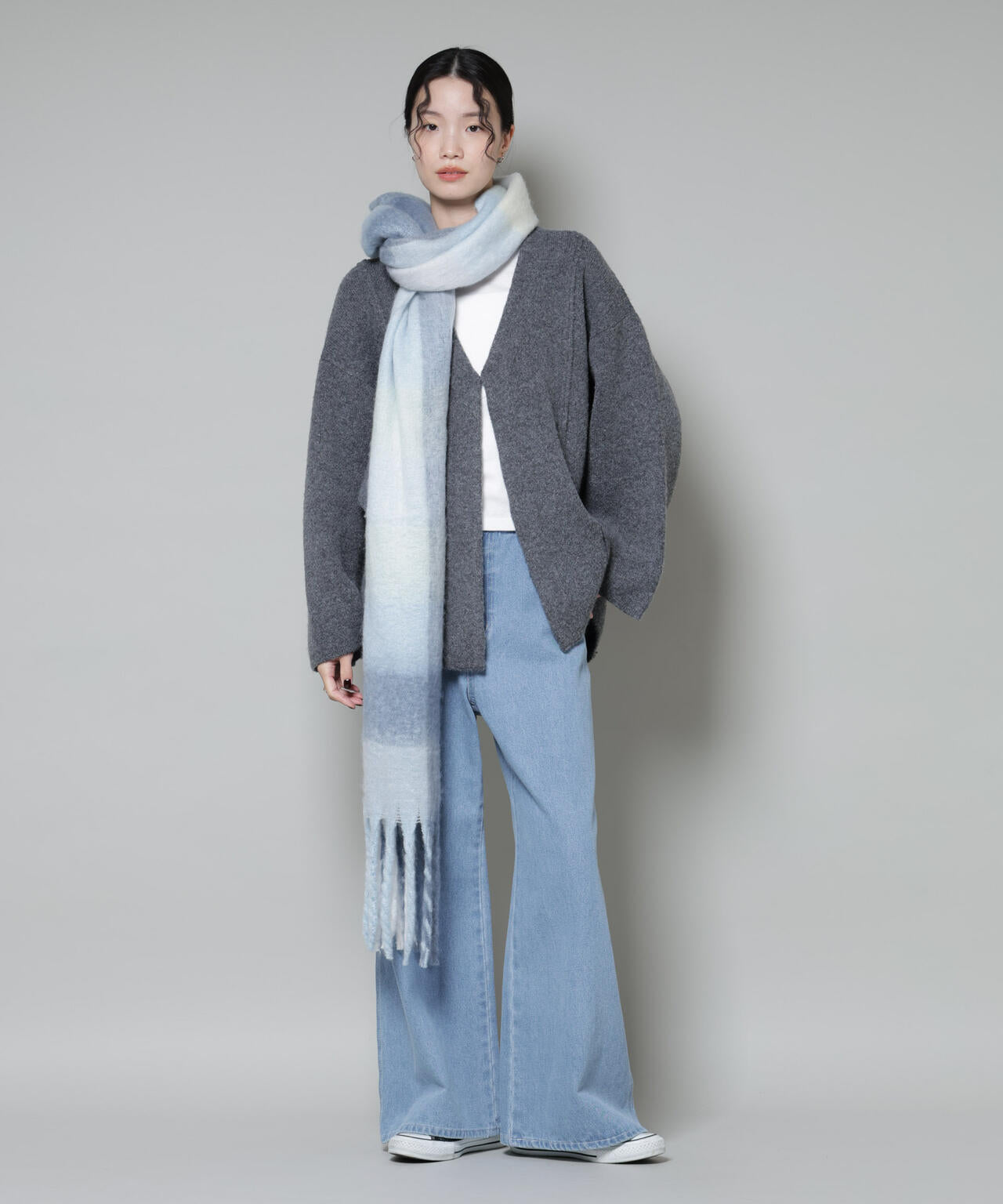 柔らかく軽さのある風合いで、カーディガン感覚で羽織れるニットジャケット。サっと羽織るだけでフェミニンな雰囲気を纏えるので、ON/OFFで活躍しそうなアイテムです。