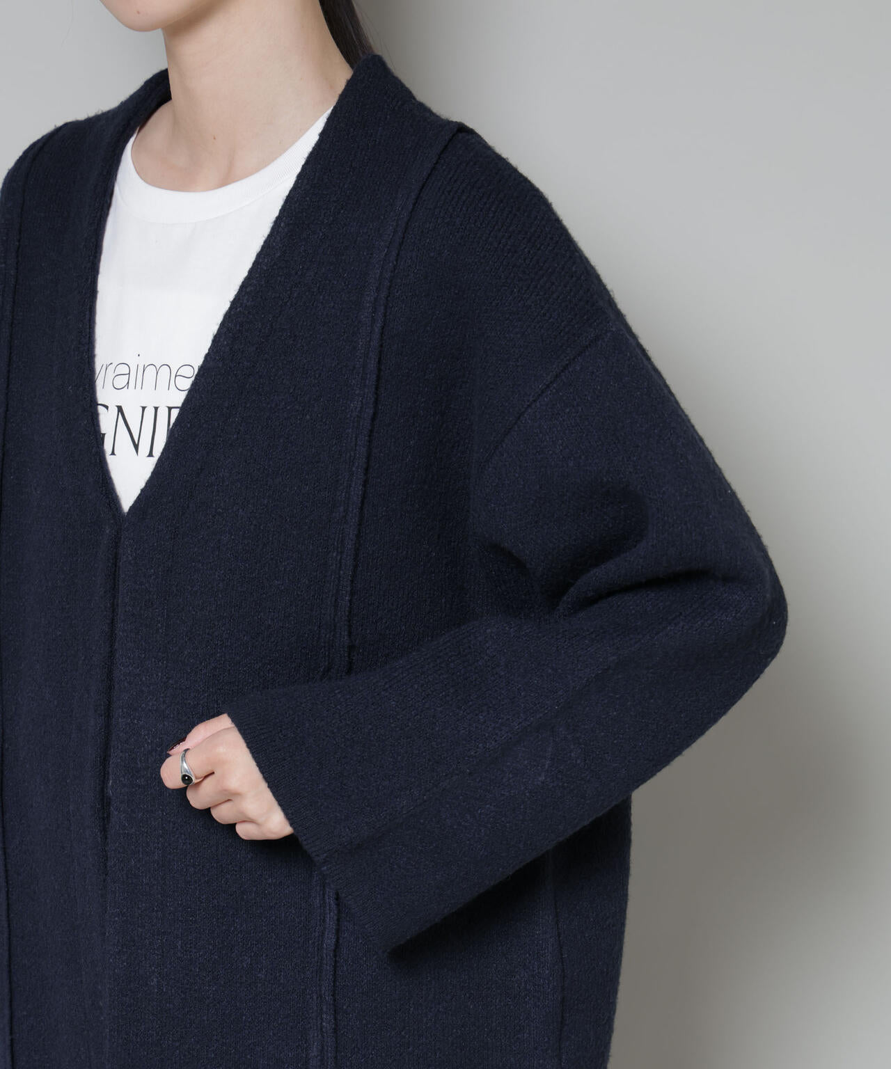 柔らかく軽さのある風合いで、カーディガン感覚で羽織れるニットジャケット