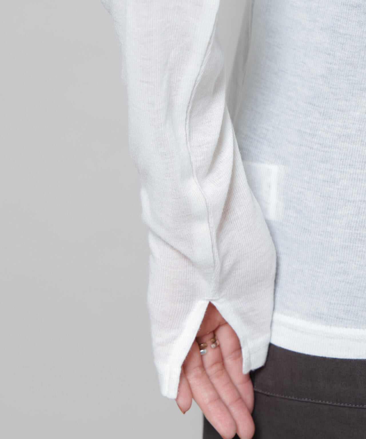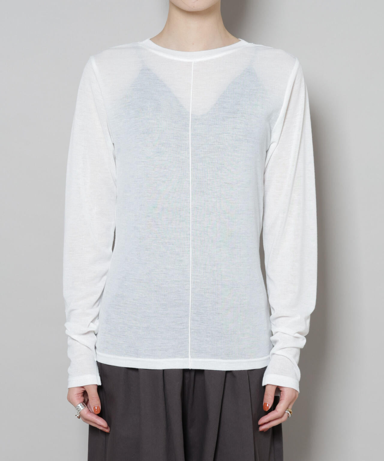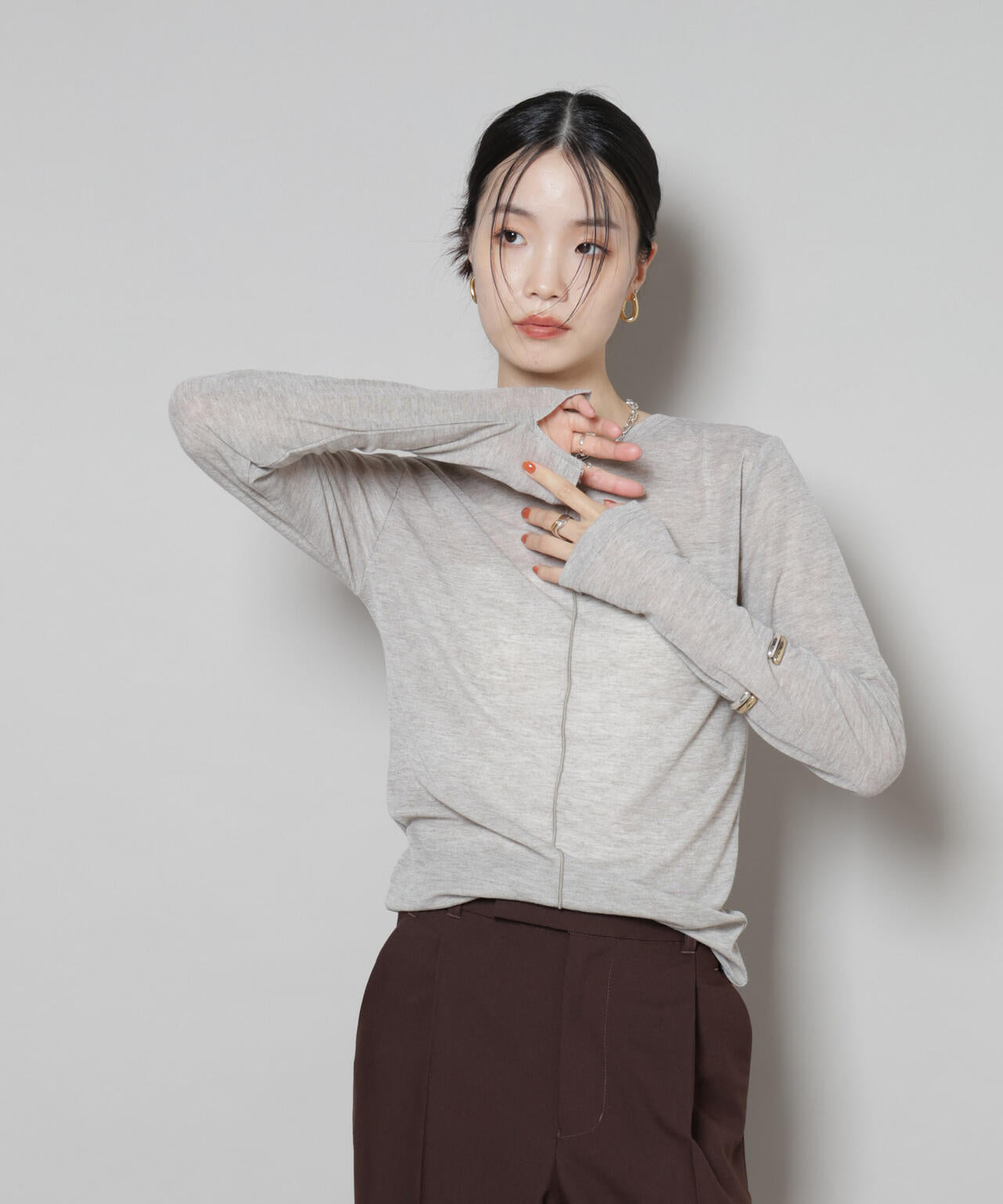 前後2wayで着回しを楽しめる長袖のカットトップス。シアー感がありながらも温かみを感じられる素材感で、レイヤードスタイルに鮮度をプラスしてくれるアイテムです。