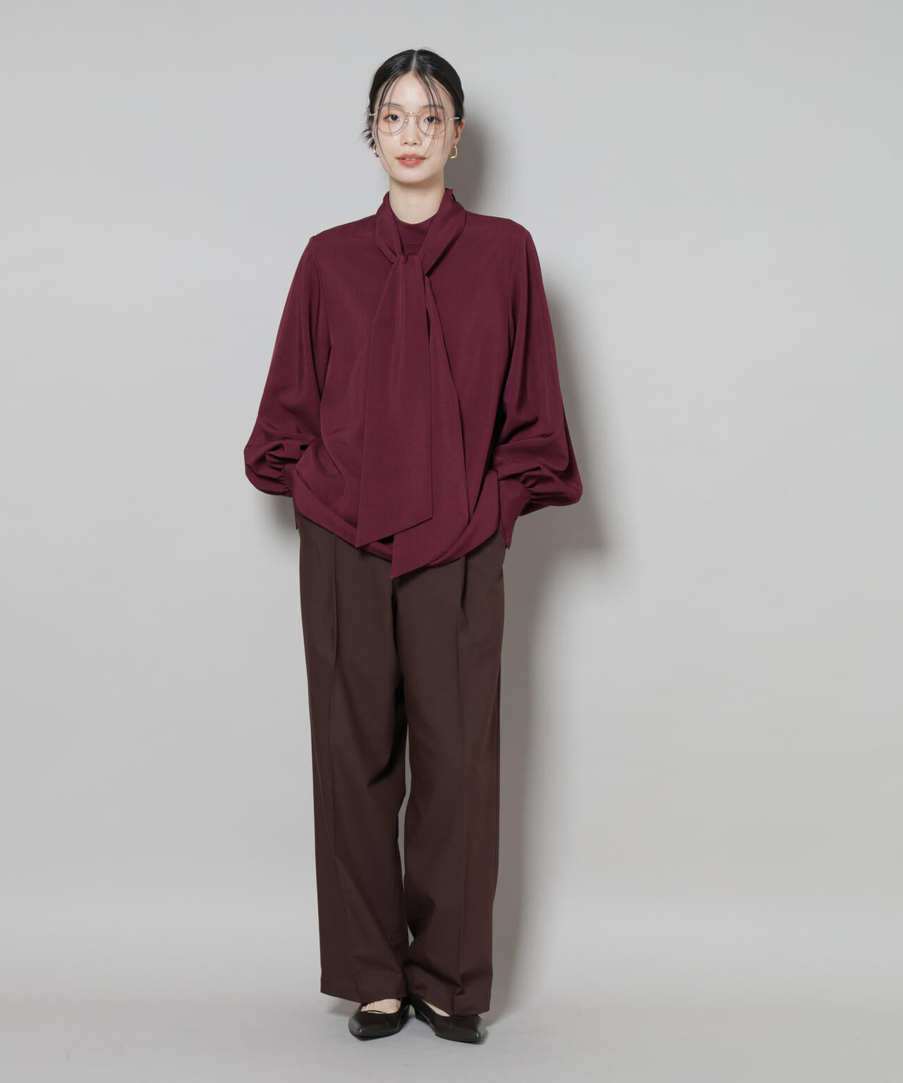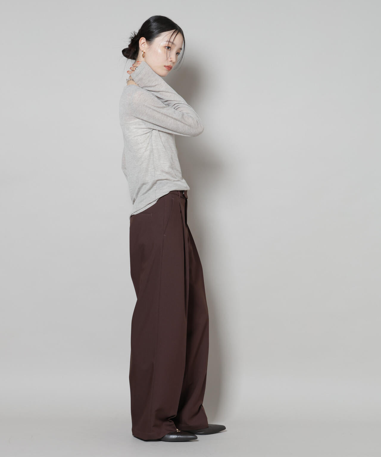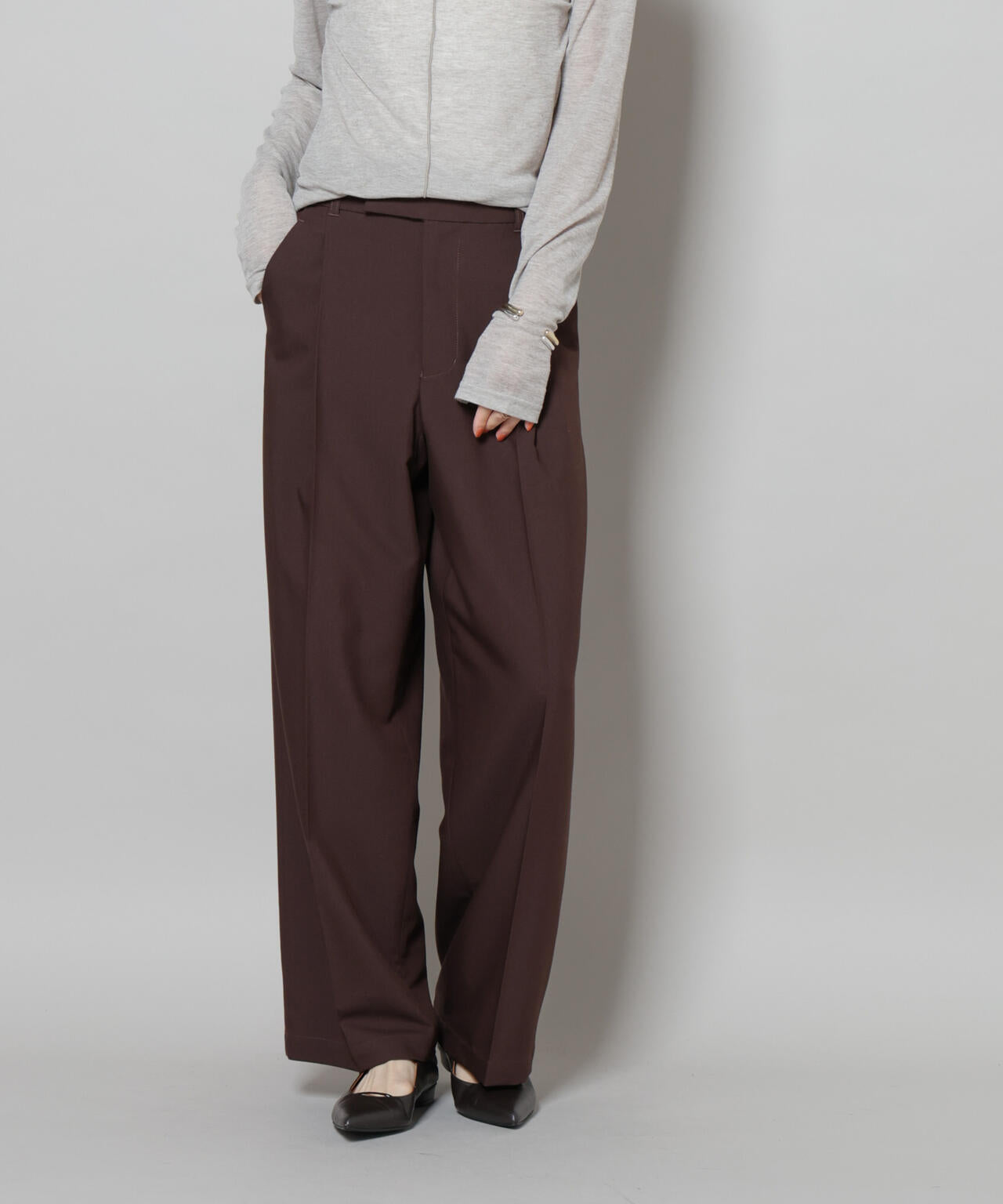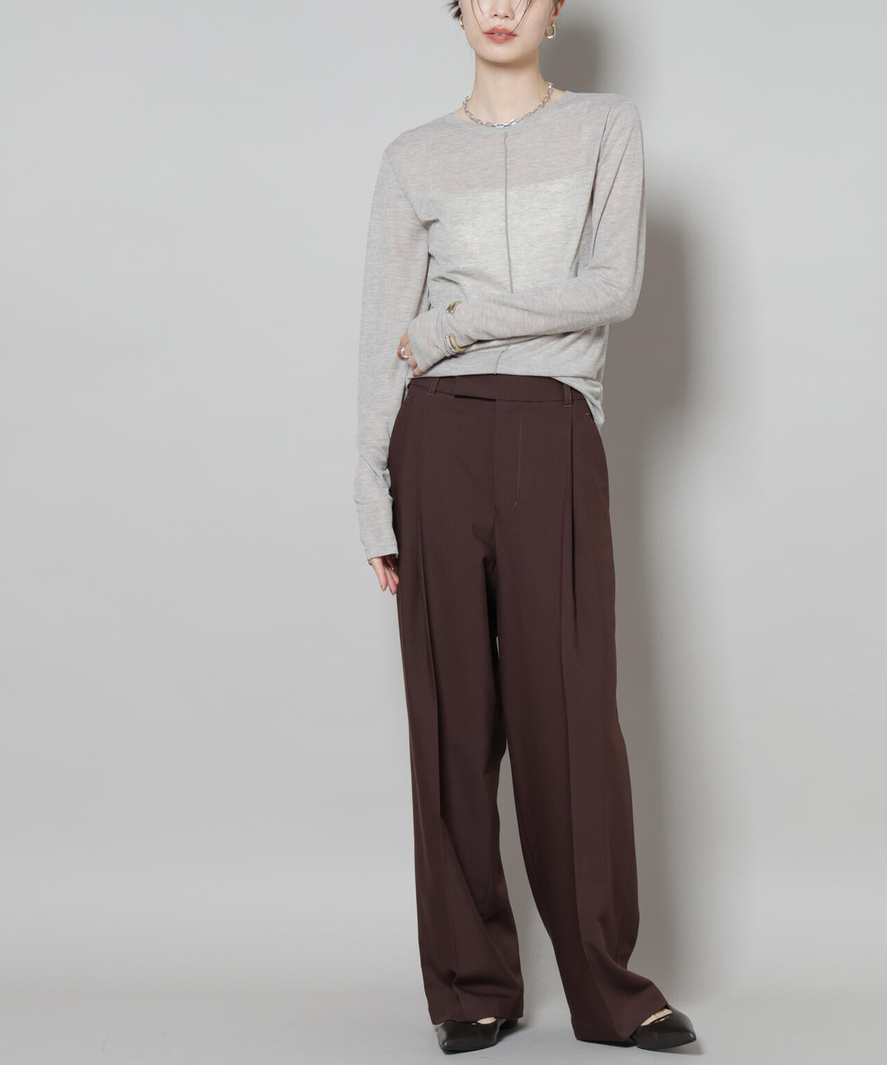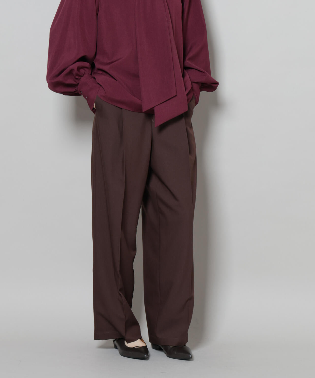 ワンタックとセンタープレスのすっきりとしたデザインが、大人っぽくスタイリッシュにきまるロングパンツ