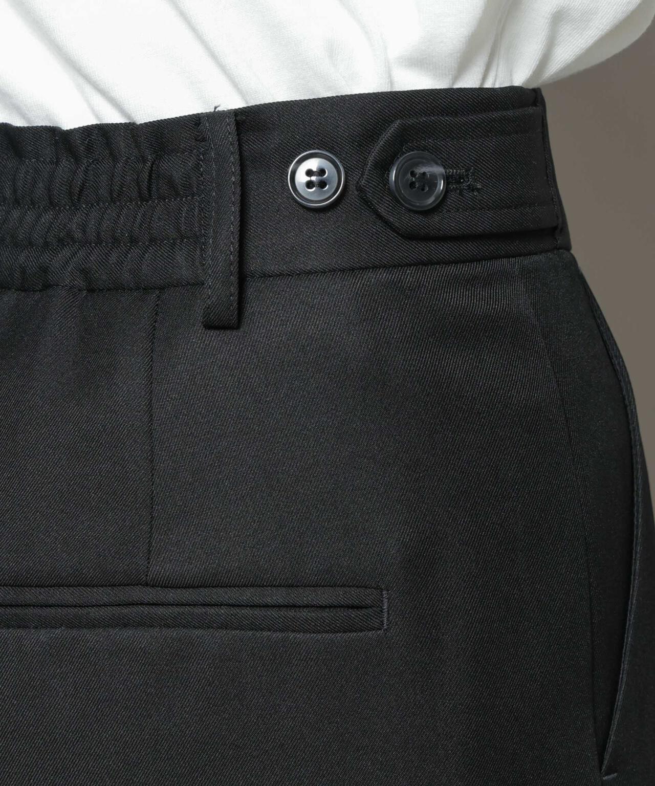 お仕事からデイリーまで幅広いシーンで活躍するワイドパンツ。柔らかくきれいめな表面感のポリエステル素材はシーズンレスで着まわせ、撥水加工が施されれいるため雨の日も安心して穿ける一着です。