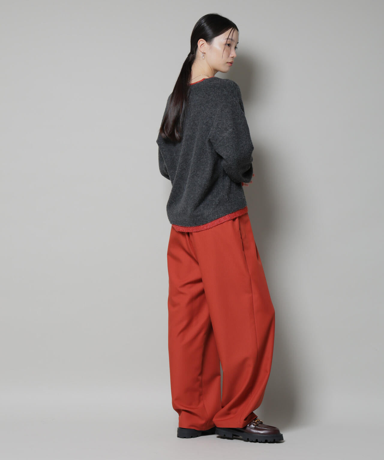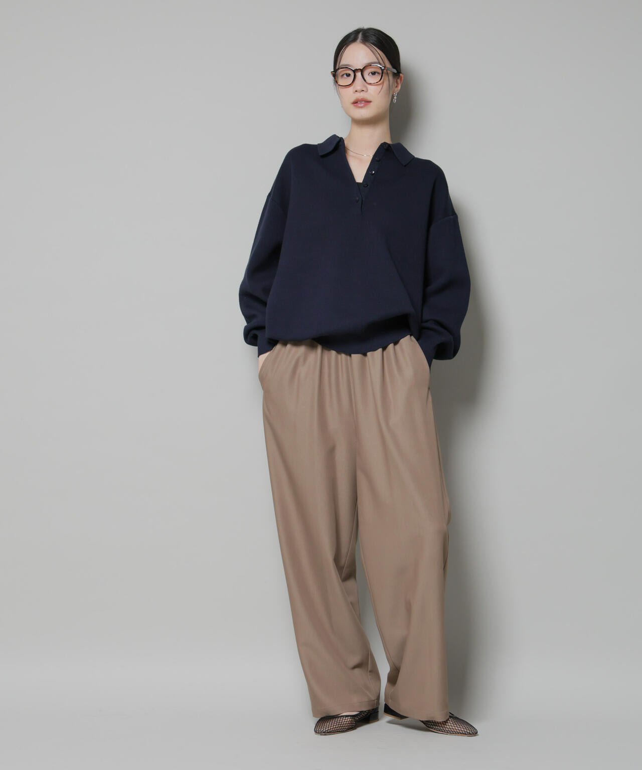 程良い落ち感とウエストのシャーリングデザインがリラックス感のあるワイドパンツ