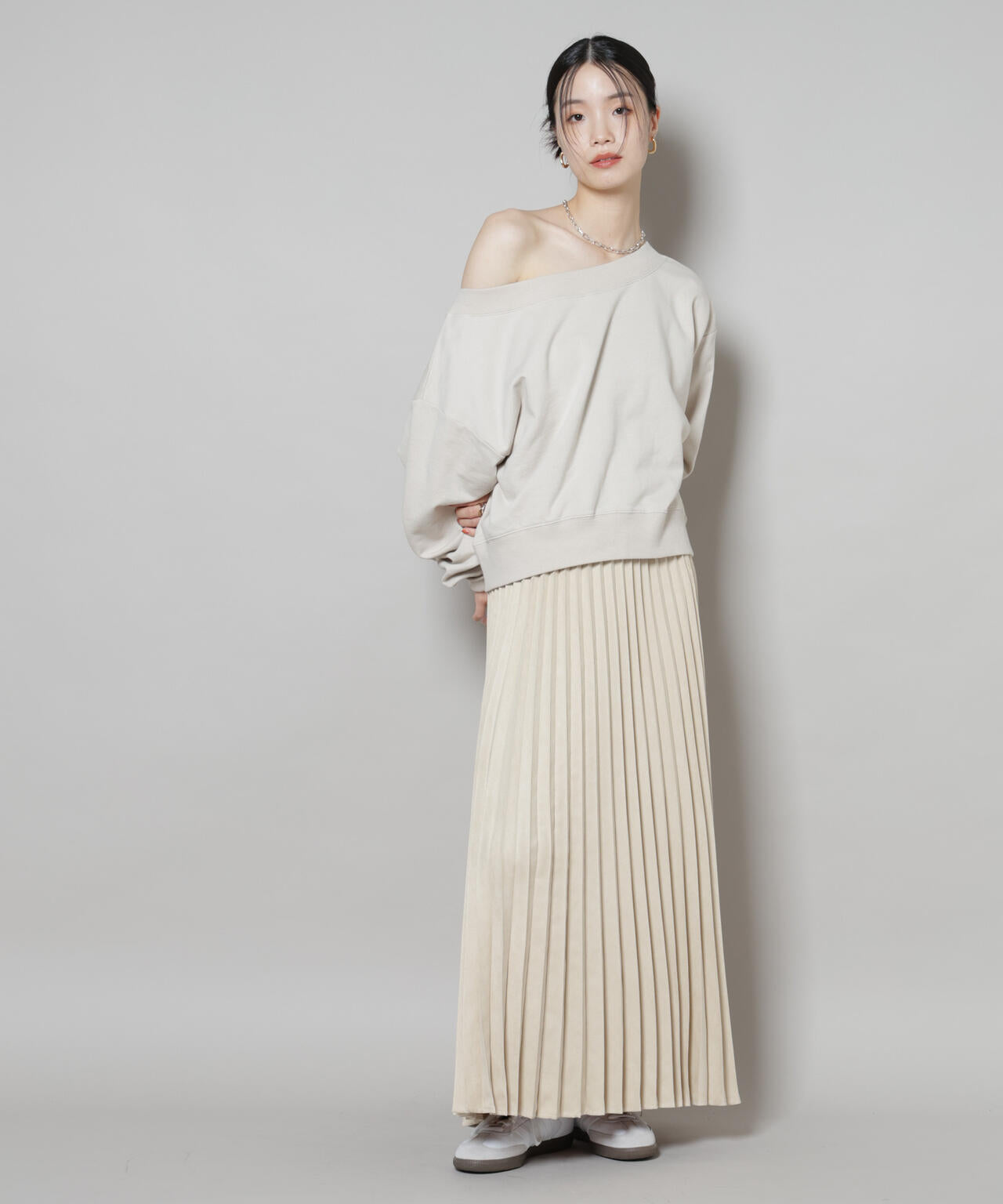 着るだけで今っぽさを纏える、フェイクスエード素材で仕立てたプリーツスカート。ニットやスウェットを合わせたり、ジャケットを合わせたり、幅広いコーディネートを楽しめます。