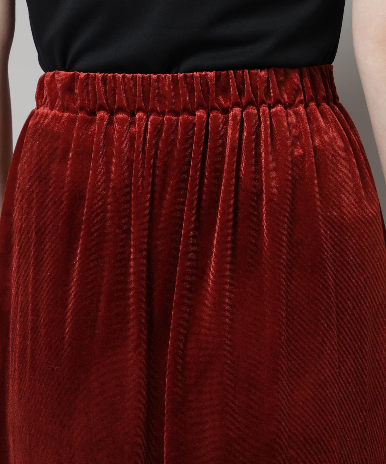 トレンド感あるスタイリングを楽しめる、ベロア素材のカットスカート