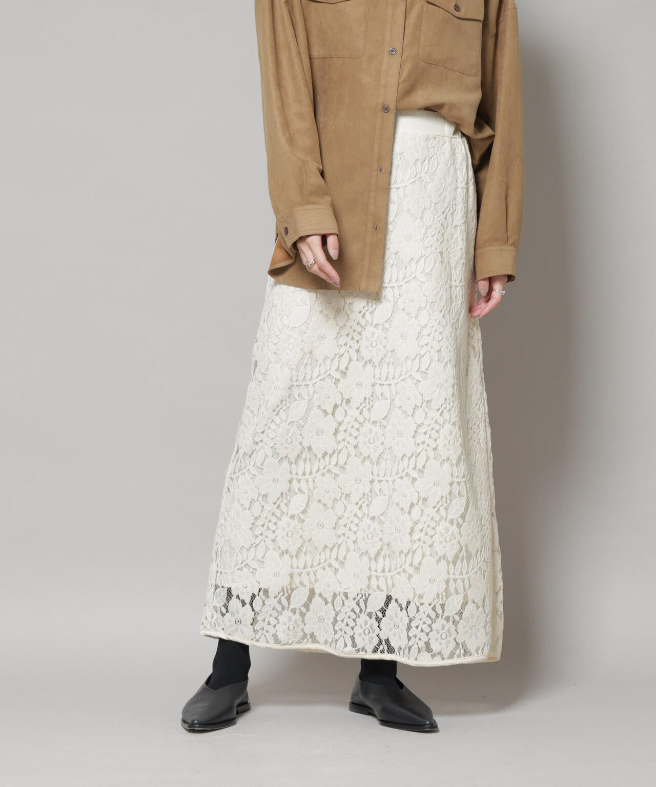 甘すぎない華やかさで、女性らしさを引き立ててくれるレーススカート。きれいめにもカジュアルにも合わせやすく、秋冬の主力ボトムスになってくれる一品です。