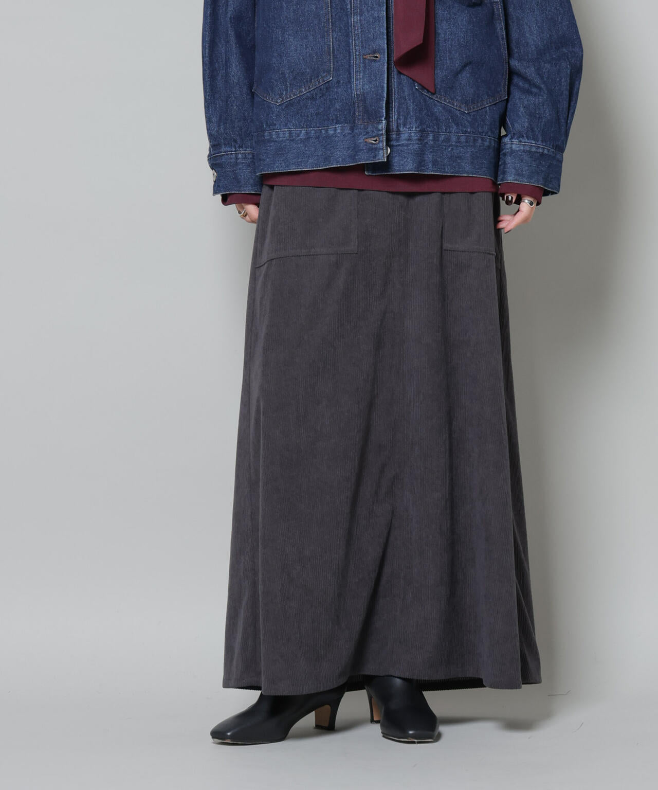柔らかな細畝コーデュロイ素材を使用したロングスカート