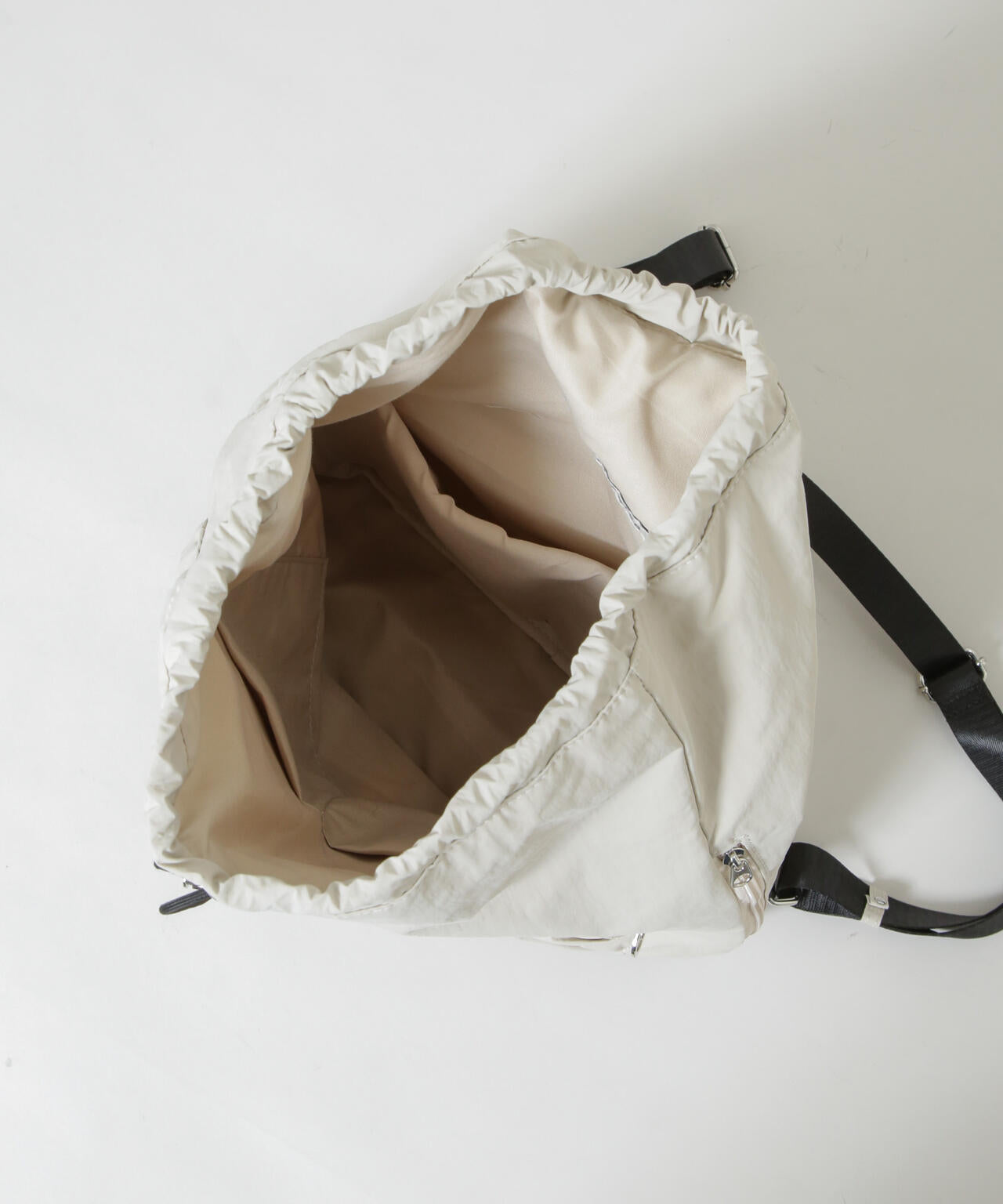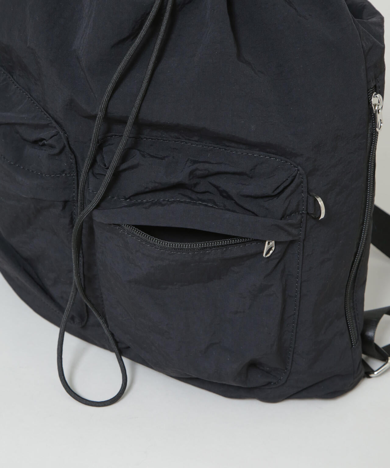 シーズンレスで活躍する、シンプルかつ実用的なドロストバッグ。マットな質感のナイロン素材を使用し、軽量で柔らかい仕上がり。ユニセックスで使用でき、通勤・通学・普段使いと幅広く活躍するアイテムです。