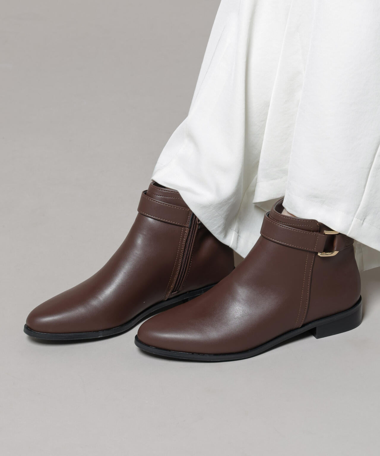 バックルベルトモチーフのさりげないアクセントが効いたショートブーツ