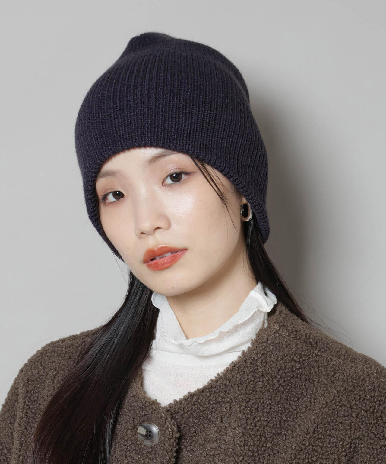 程よい厚みと膨らみ感のあるリブ編みで仕立てたニットビーニー