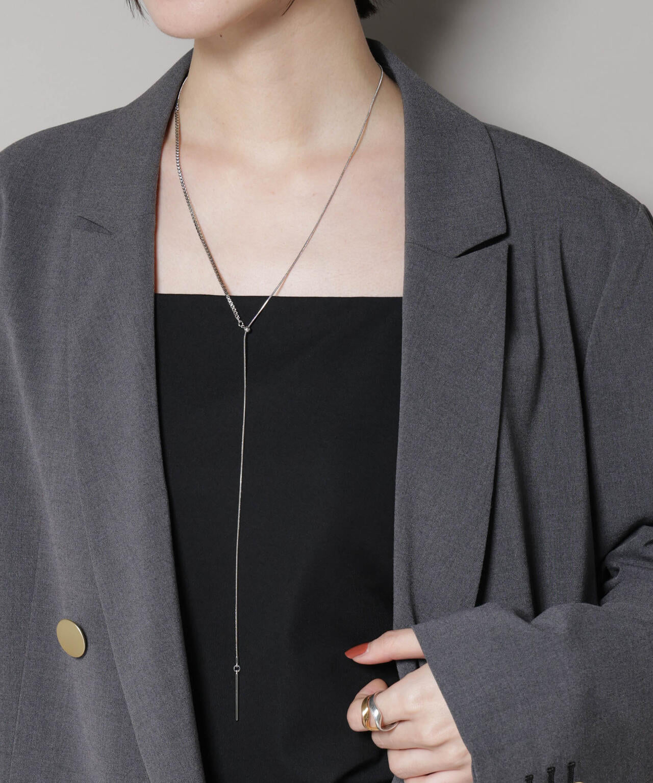 ・チャームを前に垂らしてY字ラインネックレスに