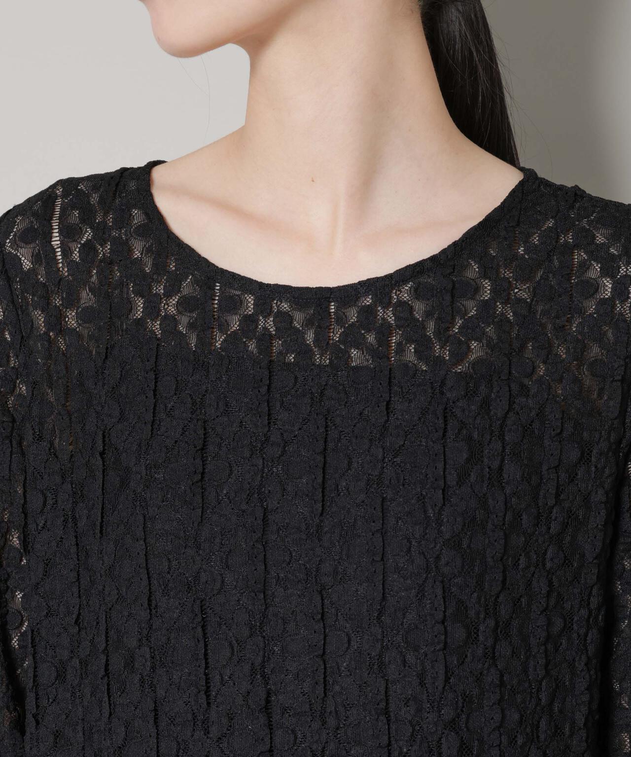 フェミニンなレイヤードスタイルを楽しめるカットレースのマキシワンピース