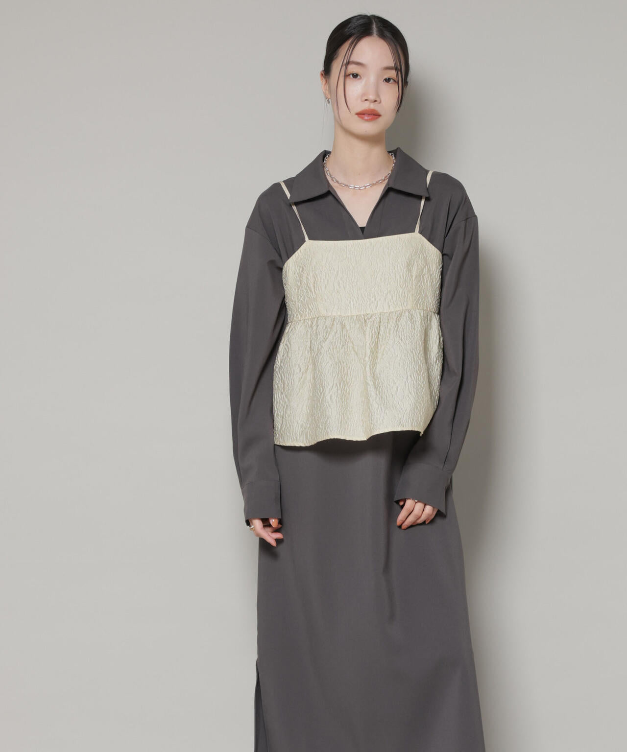 ・キャミビスチェとスキッパーワンピースのセットアップアイテム。