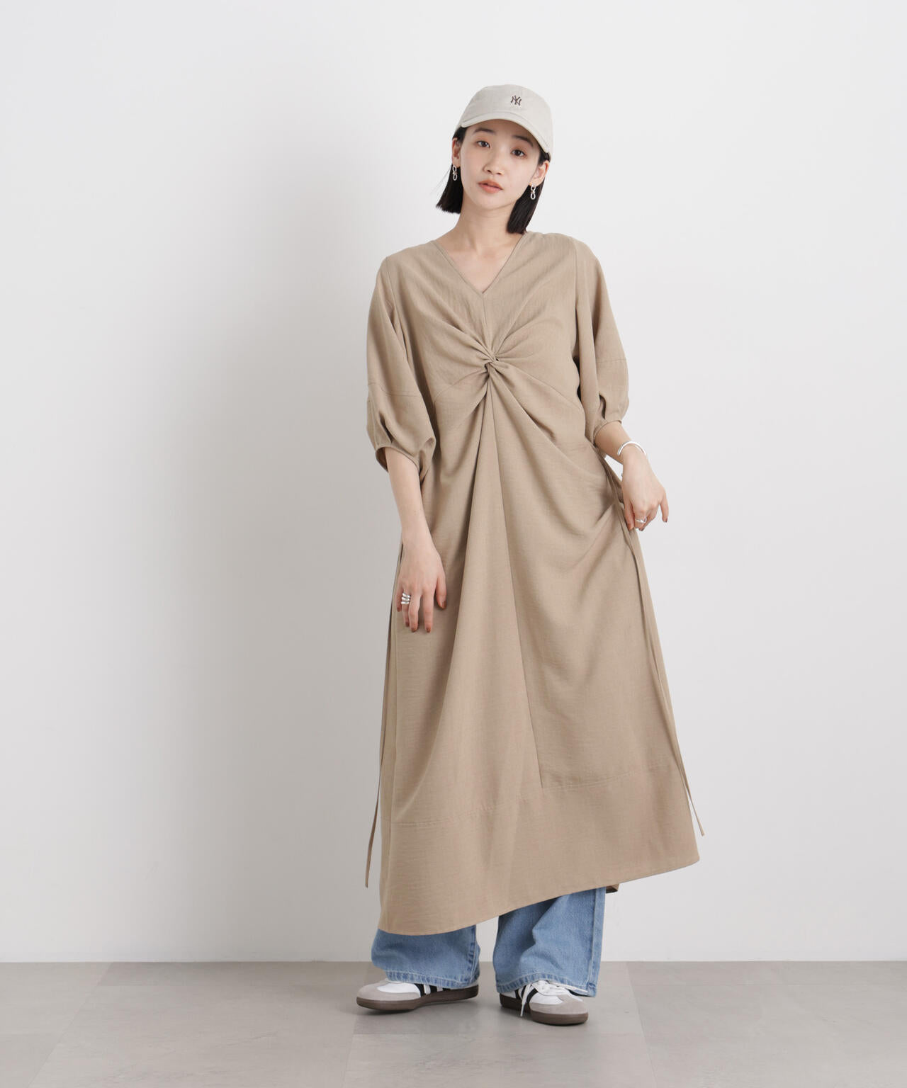 きちんと感と女性らしい抜け感を両立した前後2wayのワンピース