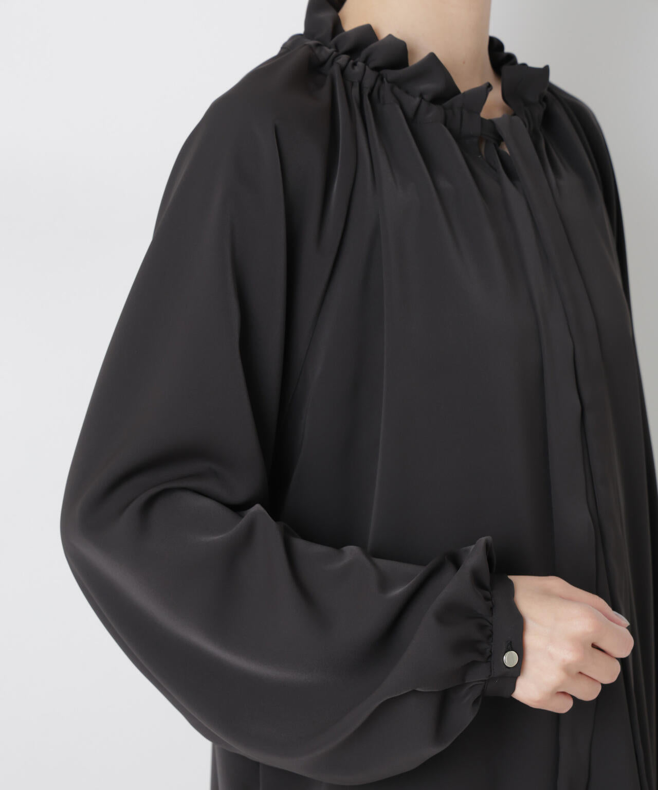 ※ボータイのギャザー分量はフリルカラーの形状維持のため、固定されています。ボータイを絞ることはできかねますので予めご了承ください。