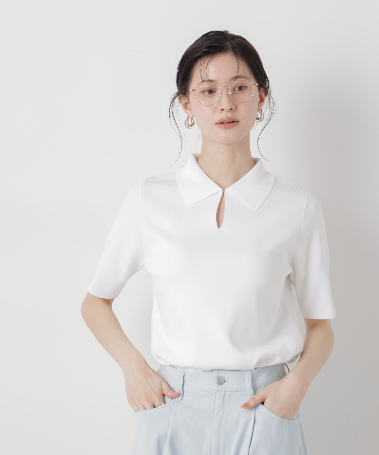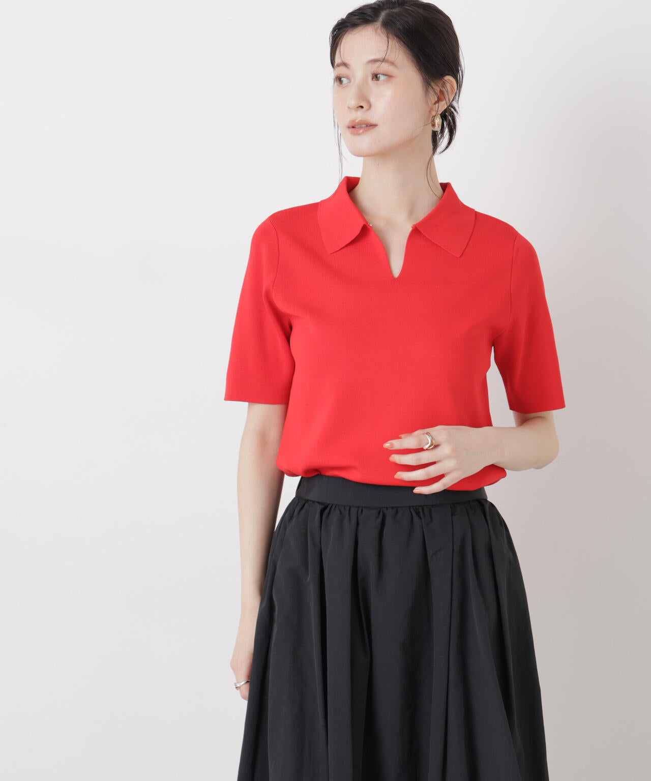 ・充実した機能性が嬉しい半袖ポロニット